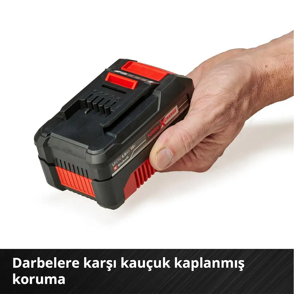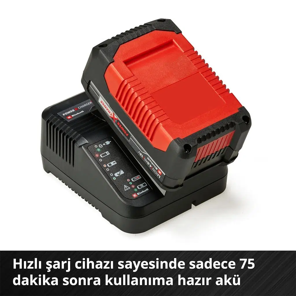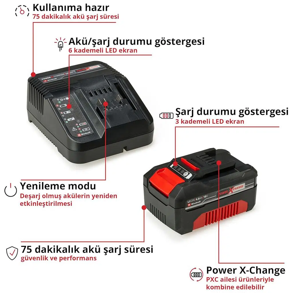 Einhell 18V 4,0Ah PXC Başlangıç ??Kiti, evinizde Power X-Change serisini başlatmak veya genişletmek için ideal temeldir. 18V 4,0Ah Power X-Change PLUS şarj edilebilir pil ve yüksek hızlı pil şarj cihazına sahip Başlangıç ??Kiti, Einhell'in çok işlevli ve tamamen değiştirilebilir Power X-Change şarj edilebilir pil sisteminin bir üyesidir. Power X-Change şarj edilebilir piller, tüm bahçe ve atölye ürün ailesindeki tüm akülü aletlere güç ve dayanıklılık sağlamak için evrensel olarak kullanılabilir. Serinin şarj cihazları aynı zamanda her PXC şarj edilebilir pil için evrensel olarak kullanılabilir. Müşteriye sağladığı avantajlar açıktır: Tüm aletler için tek bir şarj edilebilir pil ve tek bir şarj cihazı yalnızca satın alma maliyetlerinden önemli ölçüde tasarruf sağlamakla kalmaz, aynı zamanda evrensel kullanım aynı zamanda çevrenin korunmasına da yardımcı olur ve evde ve bahçede de esneklik sağlar. Ayrıca her bir alet için farklı şarj edilebilir pillere ve şarj cihazlarına sahip olmanın getirdiği dağınıklığı ve kaosu da ortadan kaldırır. Yüksek kaliteli şarj edilebilir pil, sürekli yüksek güç sağlamak için normalde pillerle ilişkilendirilen hafıza etkisine ve kendi kendine boşalmaya karşı dayanıklıdır. 18 V 4,0 Ah Power X-Change, Power X-Change ailesinden ideal temel şarj edilebilir aküdür ve aynı zamanda 36 V uygulamalarda TWIN-PACK kullanımına da uygundur. ABS proses kontrollü aktif akü yönetim sistemi, akü parametrelerinin kalıcı olarak izlenmesi için bir mikroişlemciye sahiptir. Bu nedenle maksimum güvenlik, optimum alet performansı, maksimum çalışma süresi ve maksimum servis ömrü sağlar. Mevcut şarj seviyesi 3 adımlı LED ekran üzerinden kontrol edilebilir. Gövde toza, korozyona ve mekanik etkilere karşı dayanıklı olacak şekilde tasarlanmıştır. Kauçuk kaplama, iyi bir tutuşun yanı sıra akü için yüksek darbe koruması sağlar. Pilin her aletten kolaylıkla çıkarılmasını sağlayan bir oluk kolu bulunmaktadır. Yüksek hızlı akü şarj cihazının tasarımı kompakttır ve bu nedenle az yer kaplar ve duvara kolayca asılması için entegre askı halkaları vardır. Yüksek hızlı şarj teknolojisi, kısa şarj süreleri anlamına gelir ve optimum şarj ve maksimum güvenlik için pil, akıllı bir şarj yönetim sistemi tarafından sürekli olarak izlenir. Tamamen deşarj olmuş pilleri yeniden etkinleştirmek için bir yenileme modu vardır. Tüm güncel bilgiler 6 kademeli şarj seviyesi LED göstergesi ile sağlanmaktadır.