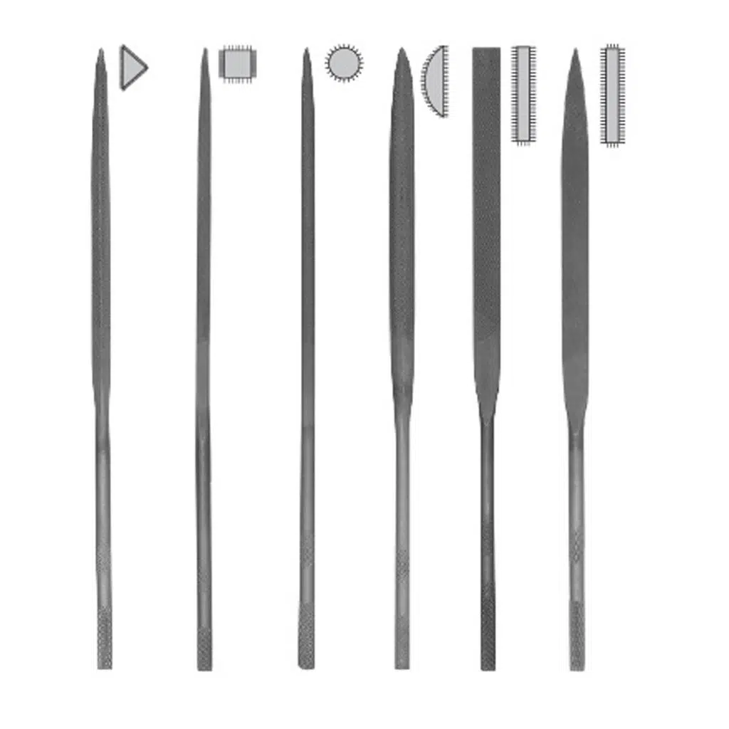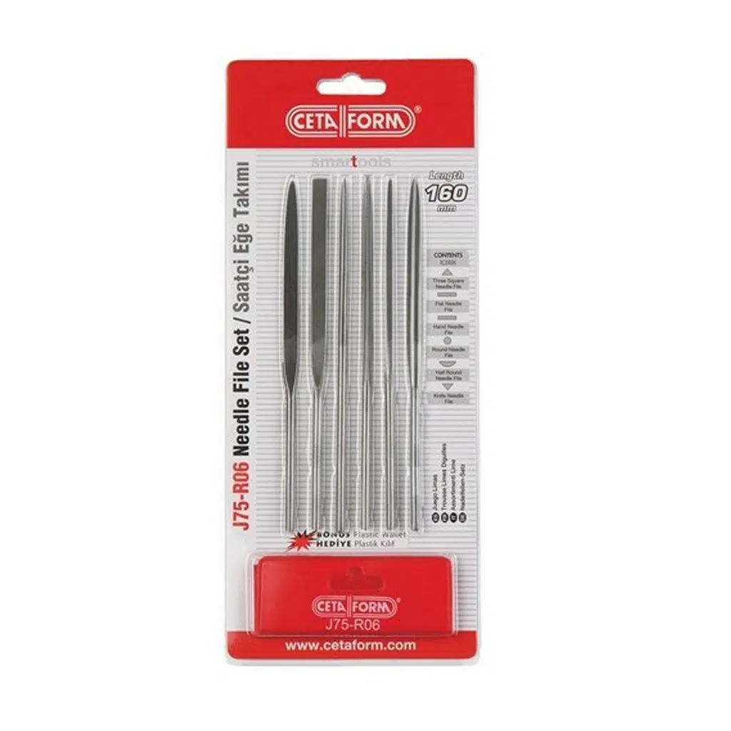 Bu set, 6 parçadan oluşan kompakt bir “saatçi eğe takımı”.