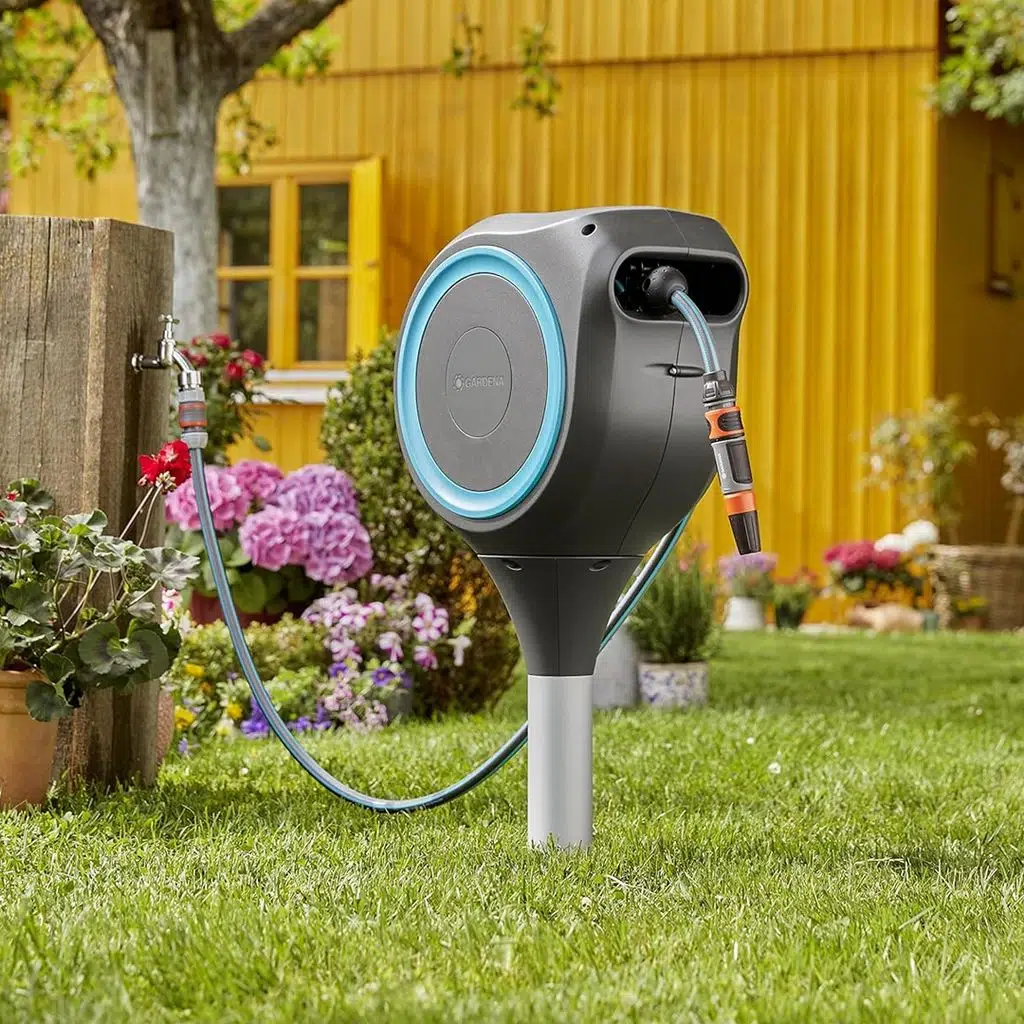Kullanım için bahçe hortumunu maksimum 15 metreye kadar uzatmanız yeterlidir ve hemen sulamaya başlayabilirsiniz. Yerleşik kısa kilitleme noktaları, zahmetsiz kullanım sağlar ve hortumu istenen uzatma uzunluğunda otomatik olarak sabitler. Yenilikçi tasarımı sayesinde, hortum kutusu 360° döndürülebilir ve bahçenizin her köşesine ulaşabilirsiniz. Hortum kutusu, sulama yaparken hareketlerinizi takip eder ve su hortumunun bükülmesini veya dolaşmasını engeller.