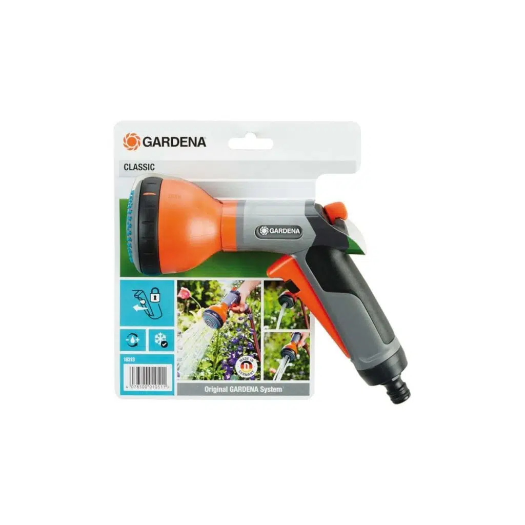 GARDENA 18313-20.000.00 CLASSIC INCE PUSKURTME TABANCASI GARDENA Classic İnce Püskürtme Tabancası ile donanımlı: püskürtücünün üç farklı su püskürtme işlevi vardır. Yumuşak püskürtme - kabarcık jet püskürtme- 9 noktalı kuvvetli jet. Yüksek temizlik gücü için 9 noktalı kuvvetli jet, çıkarılabilen ve temizlenebilen entegre filtre. Saksı bitkilerini ve tarhları temizlemek için idealdir ve aynı zamanda güçlü temizlik sağlar.