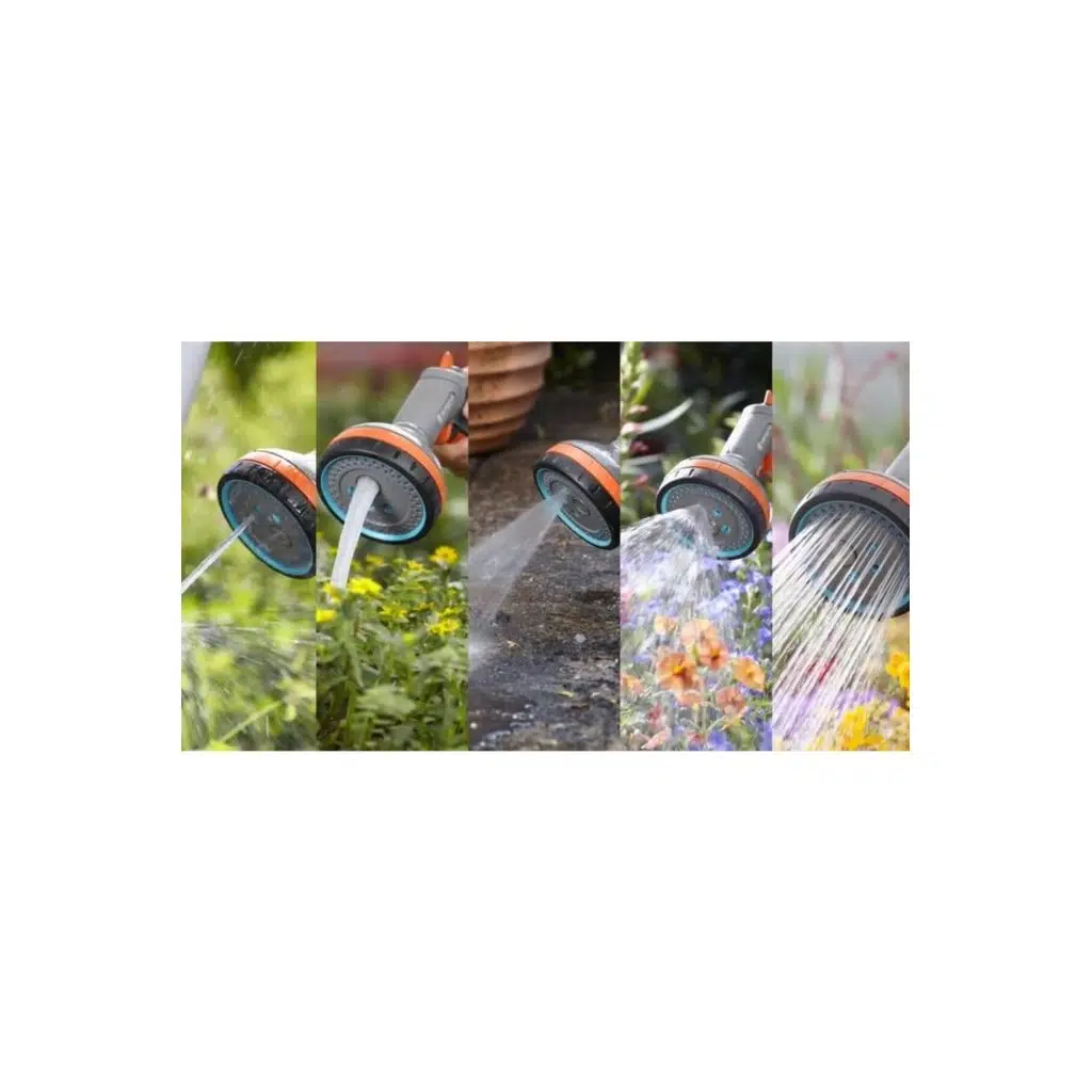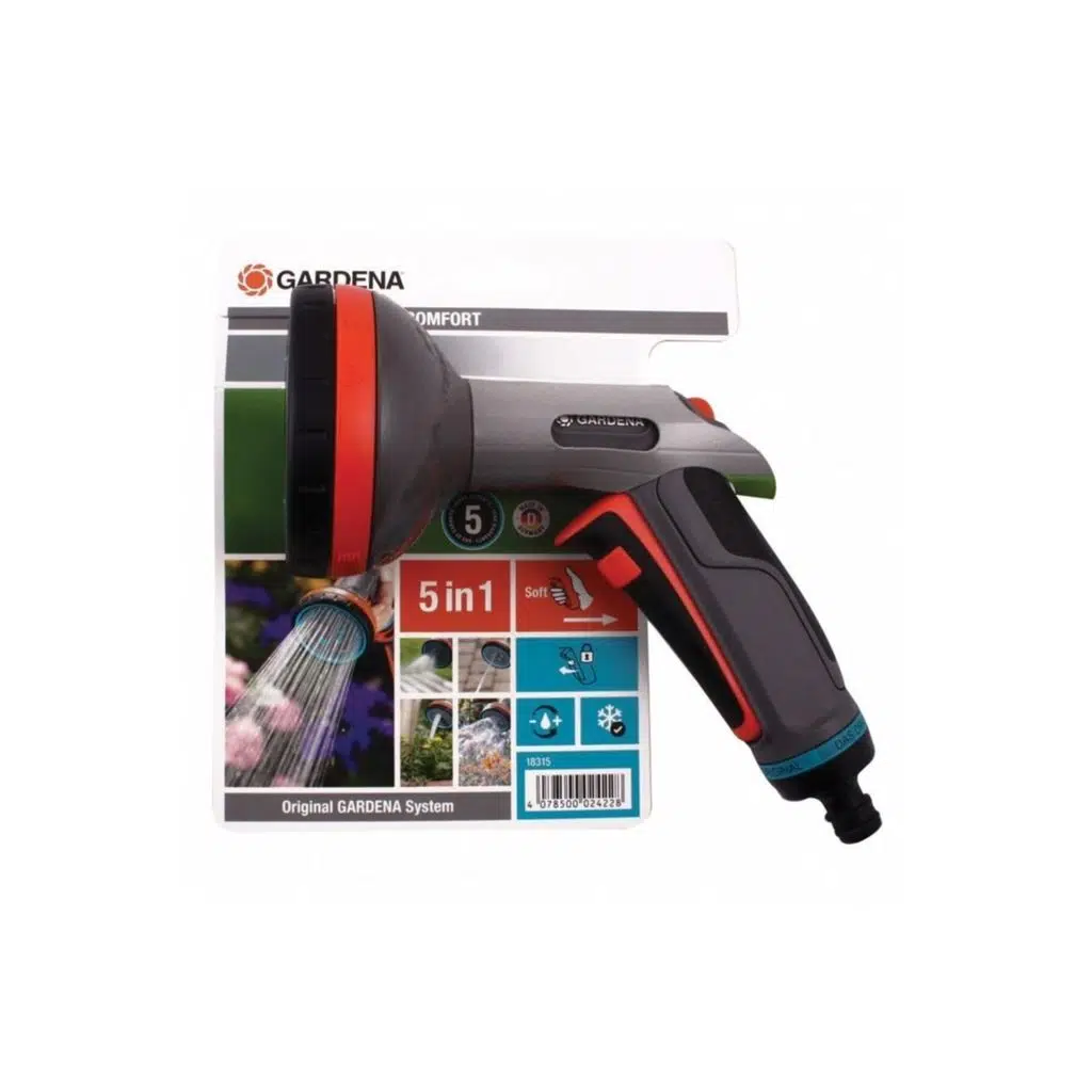 Gardena 18315 comfort çok amaçlı püskürtücü Gardena comfort çok amaçlı püskürtücü beş farklı püskürtme şekli seçilerek tüm sulama ve temizlik görevlerini yerine getirebilir. Püskürtme aletindeki yumuşak plastik parçalar hasara karşı koruma sağlar. Yumuşak plastik bileşenlere sahip ergonomik sap optimum taşıma konforu sağlar. Su akışı kademesiz olarak ayarlanabilir. Sürekli sulama için darbe tetikleyici, elinizin yorulmasını önlemek için kilitlenebilir. Filtre çıkarılabilir ve temizlenebilir.