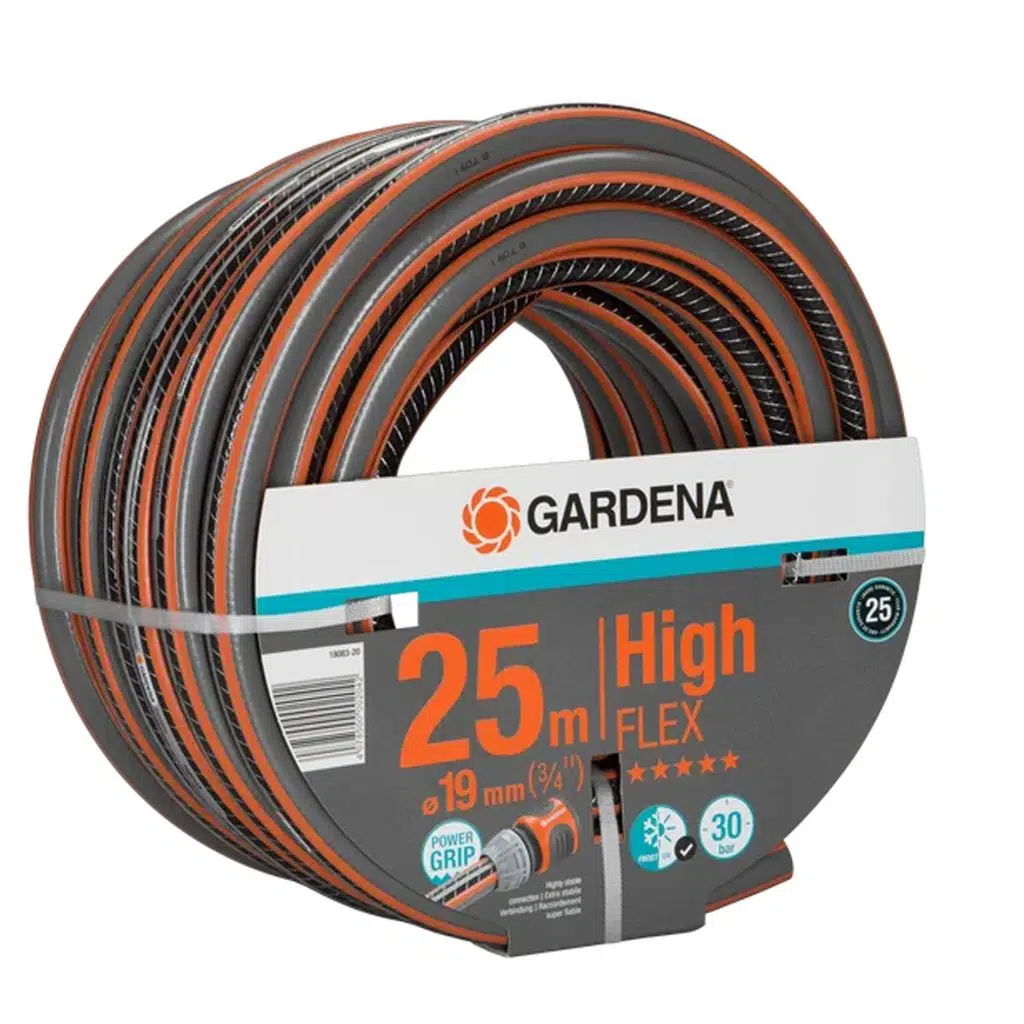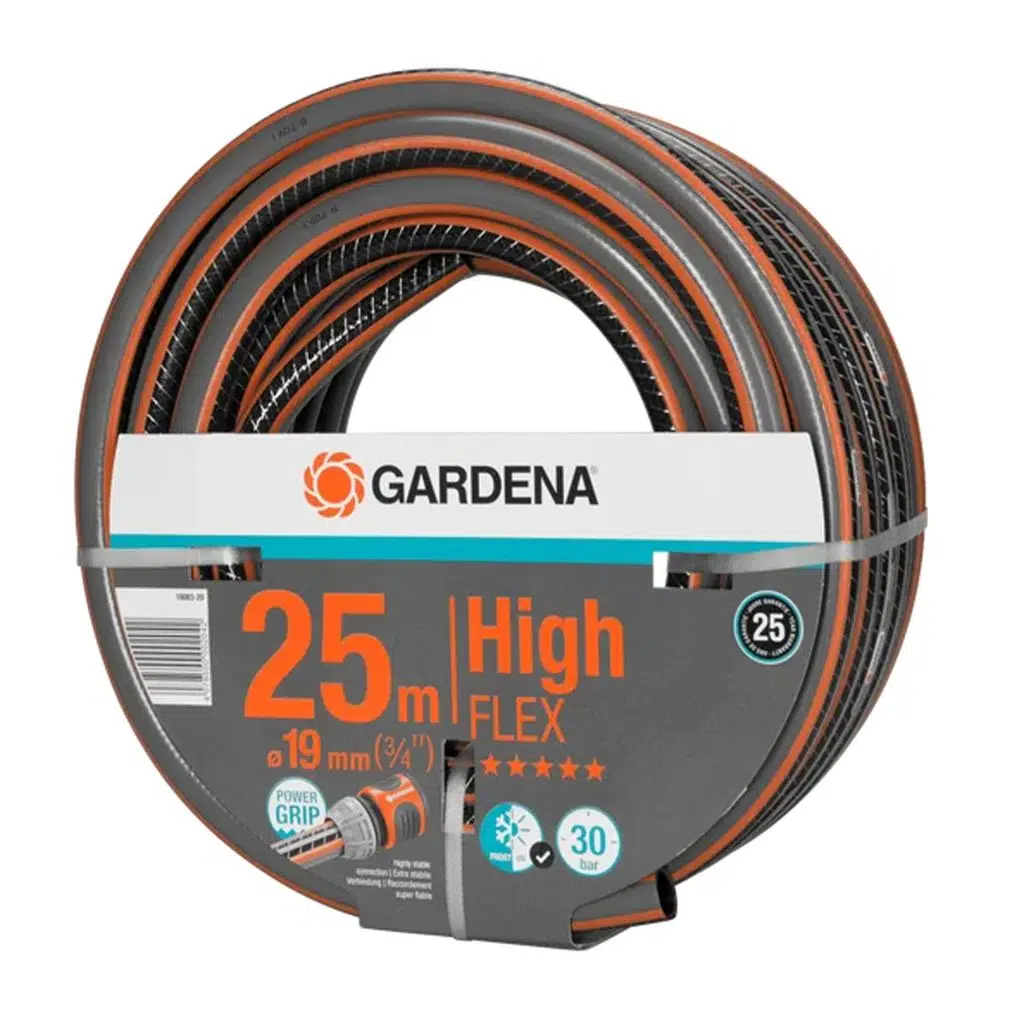 Gardena Comfort HighFLEX Hortum güçlü kavrama profil ile hortum ve hortum bağlantısı arasında mükemmel birleşimi garanti eder. Yeni teknolojiye teşekkürler, bu bağlantı tıpkı dişli çarklar gibidir. Güçlü kavrama profili birçok bahçe sahibinin uzun süreli mükemmel tutma gücü ve güvenilir bağlantı sahibi olmasını mümkün hale getirir. Yükseltilmiş profilin olumlu bir yan etkisi, hortumun kolayca sarılması ve düzgünce kaymasıdır. Ters yönde çalışan iki sipiral, basınca dayanıklı ,şeklini koruyan, genellikle esnek ve el ile kolayca tutulabilen sipiral örgü tekstili için teşekkürler. Gardena Comfort HighFLEX Hortum düğümlenmez ve bükülmez. Bunlar bahçenizde uygun ve esnek kullanım için ön koşullardır. Eğer gerekirse, Gardena parçaları ve bağlantı aygıtları ile sistematik takviyede bulunabilir. Zararlı plastiklerden, ağır metallerden temizlenmiş ve UV ışınlarına karşı dayanıklıdır. Patlama basıncı: 30 bar. Garanti: 25 yıl