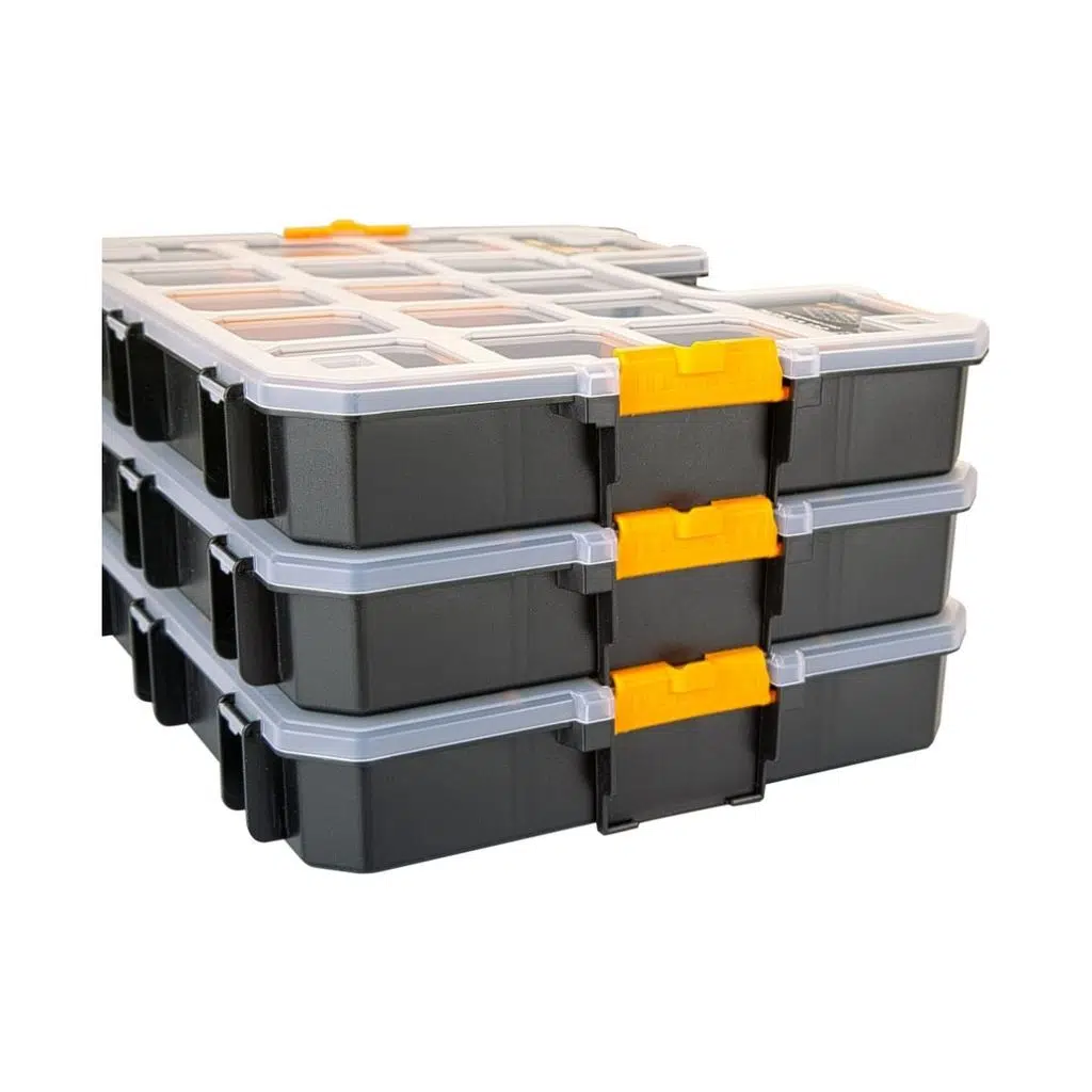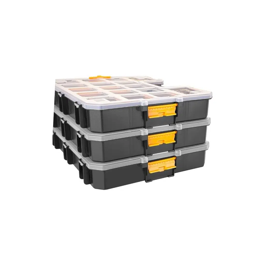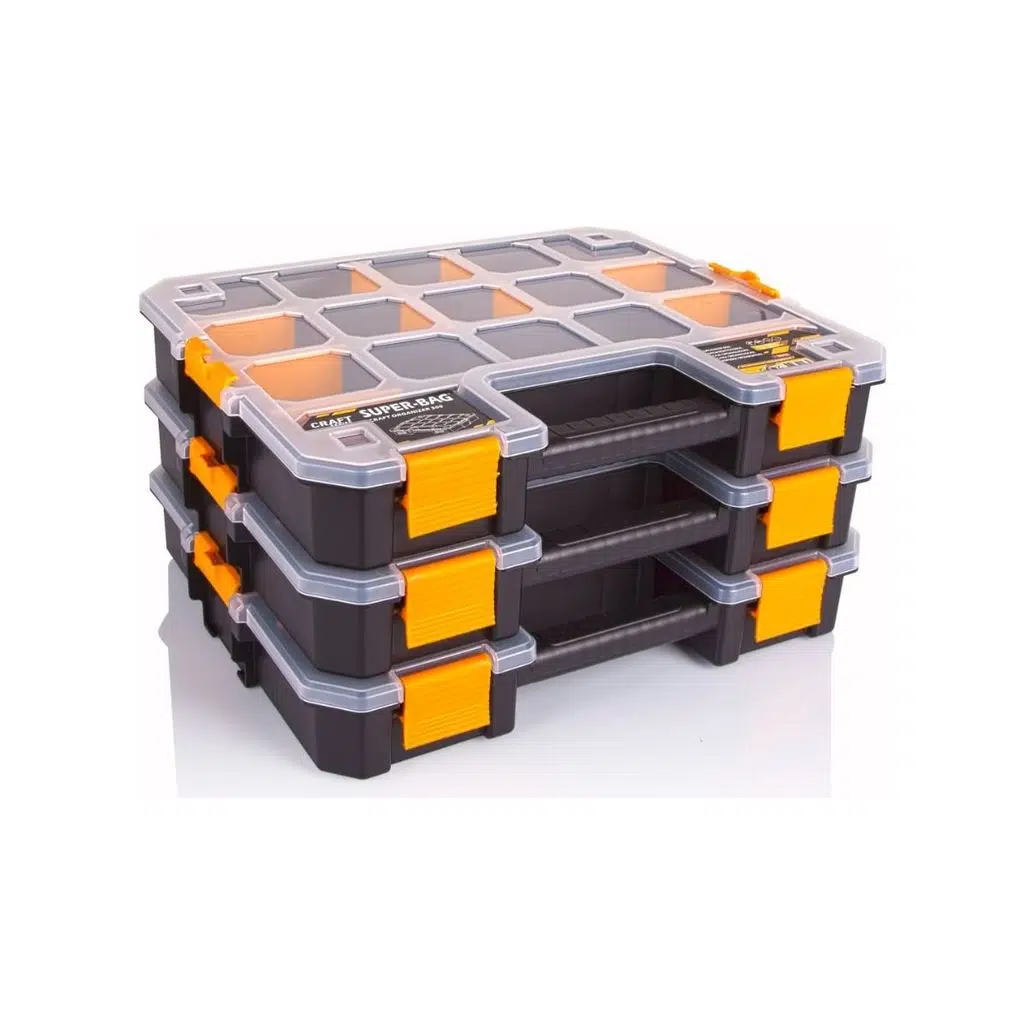 Süper Bag ASR-5021 Craft 300 Malzeme Kutusu, küçük el aletleri, vida, somun, bağlantı elemanları ve tüm hırdavat parçalarının düzenli şekilde saklanmasını sağlar. Şeffaf kapak sayesinde içerik kolayca görüntülenir ve bölmeli yapısı sayesinde parçalar birbirine karışmaz. Güçlü mandallı kilit sistemi güvenli taşıma sağlar. Ayrıca birleştirilebilir gövde tasarımı sayesinde aynı model kutular üst üste kilitlenerek istiflenebilir. Bu özellik, servislerde, atölyelerde ve mobil kullanımda düzenli bir depolama alanı oluşturmayı kolaylaştırır. | |