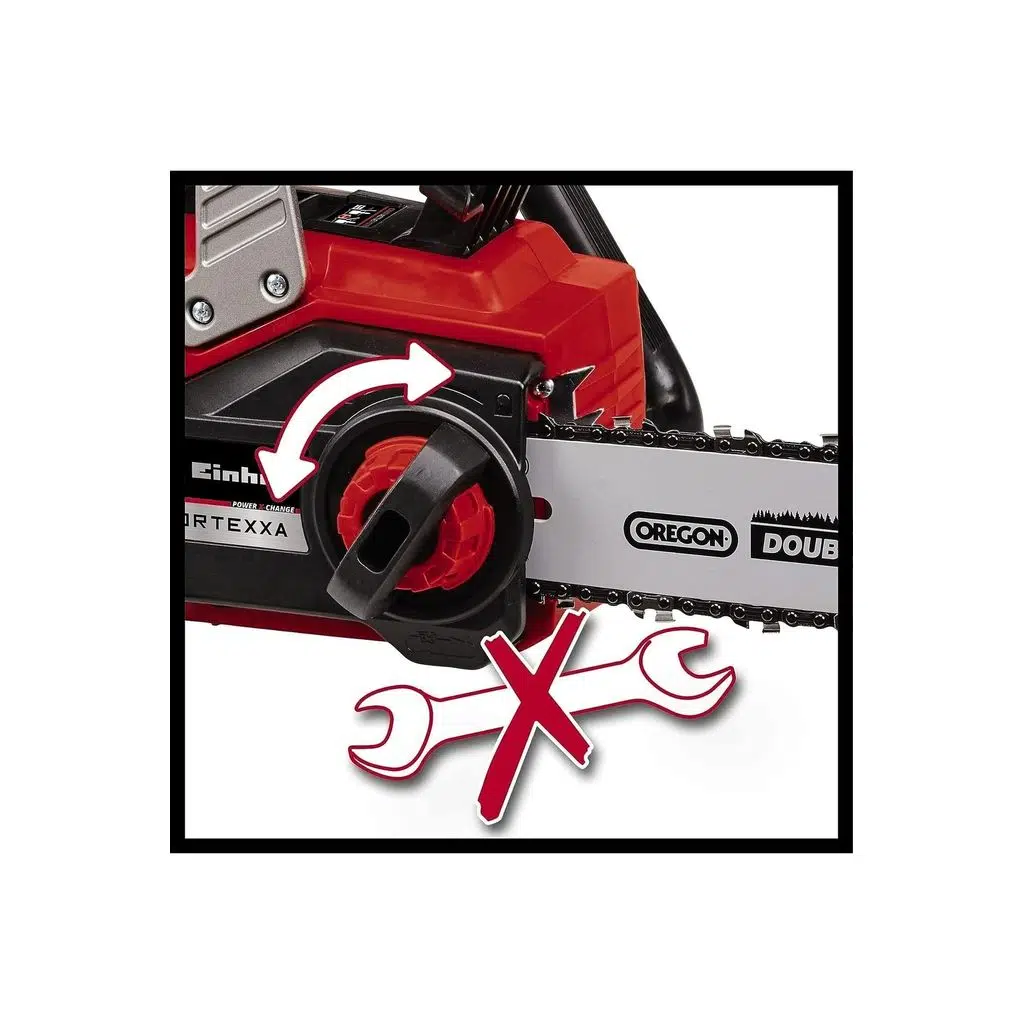 Einhell FORTEXXA 18/30 Akülü Ağaç Kesme Makinesi - 4600010 Ürün Özellikleri Einhell akülü elektrikli testere FORTEXXA 18/30, esnek Power X-Change ailesinin güçlü bir üyesidir. Kalın dallı meyve ağaçlarında ve yoğun yaprak döken ve iğne yapraklı ağaçlarda ahşap işleri için mükemmel bir yardımcı olan FORTEXXA, geleneksel bir karbon fırça motorundan daha dayanıklı ve daha güçlü olan fırçasız bir elektrik motoru olan Einhell fırçasız motorla çalıştırılır. OREGON kalitesindeki kılı ç ve zincirle birlikte, kalın dallar ve dallar bile FORTEXXA'ya karşı koyacak çok az şeye sahiptir. Elektrikli testerenin kablosuz versiyonu, kereste, kare kereste ve yakacak odun ile çalışırken de en iyi sonuçları elde eder. Aletsiz ayarlanabilen zincir gerginliği ve aynı derecede kolay zincir değişimi, kullanımı kolaylaştırır. Zincir yakalayıcı ve anında zincir frenli geri tepme koruması, kullanım sırasında güvenliği sağlar ve büyük yağ doldurma ağzı aracılığıyla otomatik zincir yağlama, bakımı kolaylaştırır. Sağlam pençe durdurucu metalden yapılmıştır, ergonomik sap, sağlam ve güvenli bir tutuş için yumuşak bir kavrama ile donatılmıştır. Çalışma için esnek Power X-Change serisinden 1x 18 volt pil gereklidir. Einhell'in yenilikçi Power X-Change serisi, yüksek performans ve maksimum esneklikle öne çıkıyor: Lityum iyon piller, Einhell sistem serisindeki cihazlar arasında süresiz olarak değiştirilebilir. Her sistem pili, her Power X-Change cihazıyla kullanılabilir. Zincir hızı uygulamaya bağlı olarak ayarlanabilir, yani tam güç (8 m/s) ve eko modu (6 m/s) arasında değiştirilebilir. Azaltılmış zincir hızı ile pil ömrü uzar. Teslimata pil veya şarj cihazı dahil değildir, bunlar ayrı olarak, örneğin farklı güçlerde pratik bir başlangıç seti olarak mevcuttur.• Power X-Change ailesinin üyesi, 1x18V pil gereklidir• Einhell Fırçasız Motor - fırçasız elektrik motorlu• OREGON kaliteli kılı ç ve zincir• Uygulamaya bağlı olarak ayarlanabilir zincir hızı• Tam güç (8,9 m/s) ve eko modu (6 m/s) arasında seçim• Anında zincir freni ile geri tepme koruması• Aletsiz zincir germe ve zincir değişimi• Yumuşak kavramalı ergonomik tutamak• Metal pençe durdurma• Büyük yağ doldurma ağzı• Otomatik zincir yağlama• zincir yakalama pimi• En iyi sonuçlar için öneri: 4.0 Ah pil ve daha büyük• Pilsiz ve şarjsız teslimat (ayrı satılır) Teknik Özellikler Dahil edilen pil sayısı 0 adet Dahil edilen şarj cihazı sayısı 0 adet rölanti hızı maks. 4300rpm^-1 Maksimum zincir hızı 8.9m/s motor voltajı 18 v motor tipi fırçasız motor Ürün ağırlığı 4.03kg Kesme uzunluğu 27 cm kılı ç uzunluğu 30 cm Zincir gergi/sabitleme tipi aletsiz yağ tankı kapasitesi 160ml