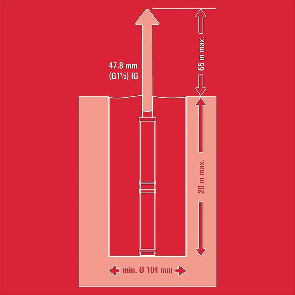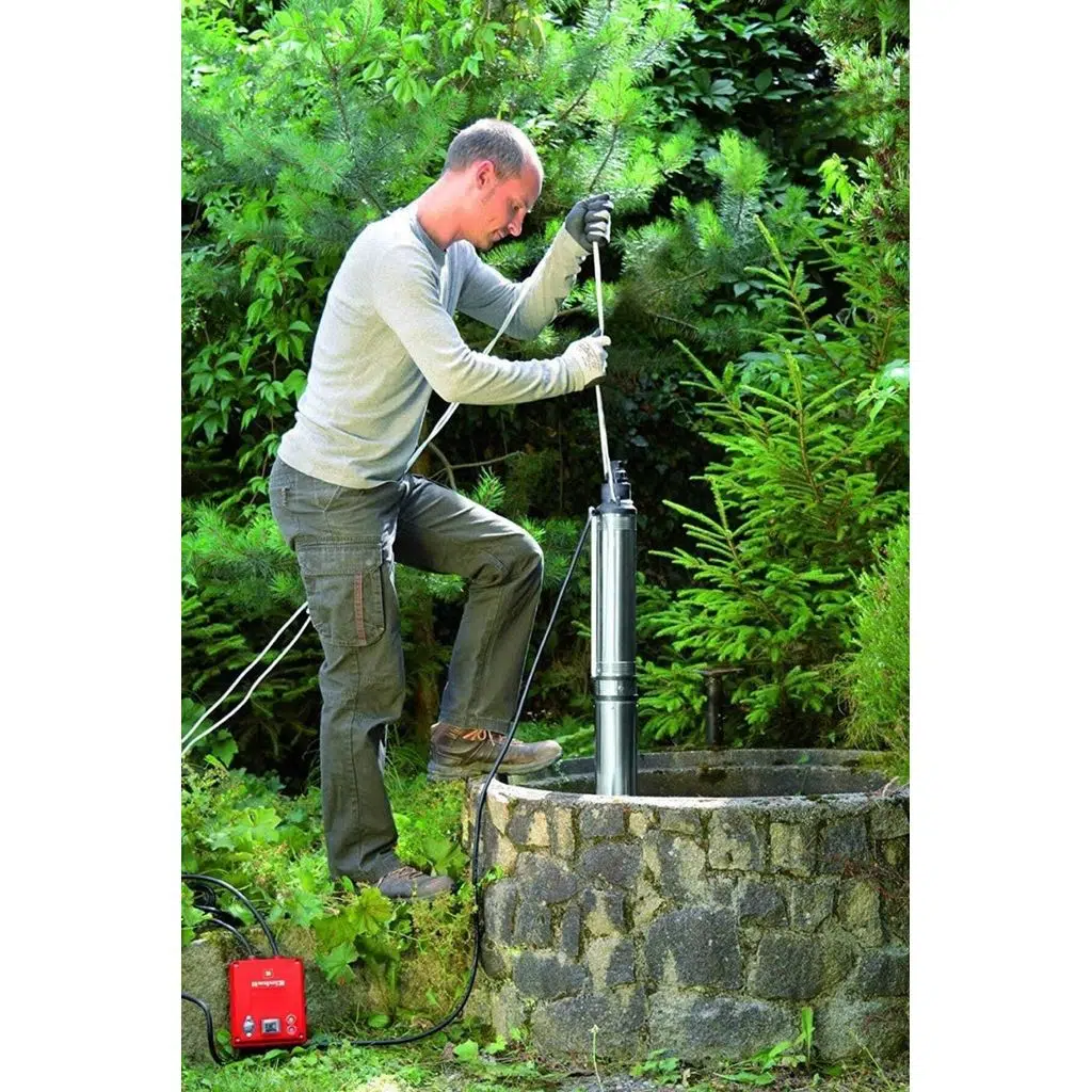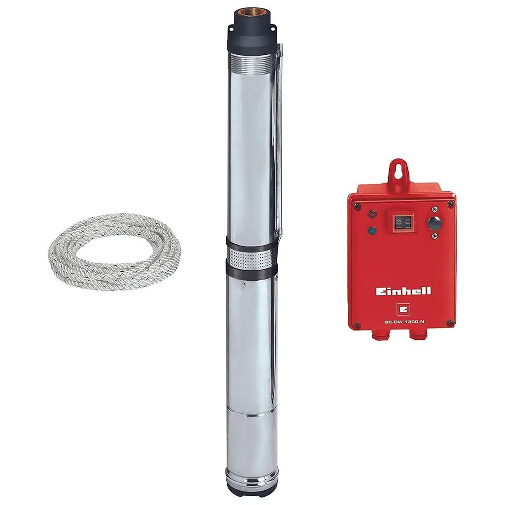 Einhell GC-DW 1300 N Derin Kuyu Dalgıç Pompa çok kademeli pompa pervane sistemi ile 65 metre derinlikten temiz su iletebilen verimli ve güvenilir bir yardımcıdır. 1300 W gücündeki motoru ile kuyu, rezervuar ve su depolarından saatte 5000 L su basabilirsiniz. Gövdesi paslanmaz çelikten olup oldukça dayanıklıdır Prinç astarlı sağlam hortum bağlantısı ve geri dönüşsüz valfe sahiptir. Yüksek kaliteli contası ile bakım gereksinimi en aza indirgenmiştir. Harici kontrol paneli, 2 adet askı gözü ve 22 metrelik daldırma halatı bulunmaktadır.