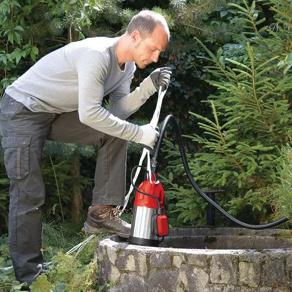 Einhell GC-DW 900 N Derin Kuyu Dalgıç Pompa çok kademeli pompa pervane sistemi ile 32 metre derinlikten temiz su iletebilen verimli ve güvenilir bir yardımcıdır. 900 W gücündeki motoru ile kuyu, rezervuar ve su depolarından saatte 6000 L su basabilirsiniz. Gövdesi paslanmaz çelikten olup oldukça dayanıklıdır. Yüksek kaliteli contası ile bakım gereksinimi en aza indirgenmiştir. Şamandıra ayarı bulunur. 2 adet askı gözü daldırma halat güvenle bağlanabilir.