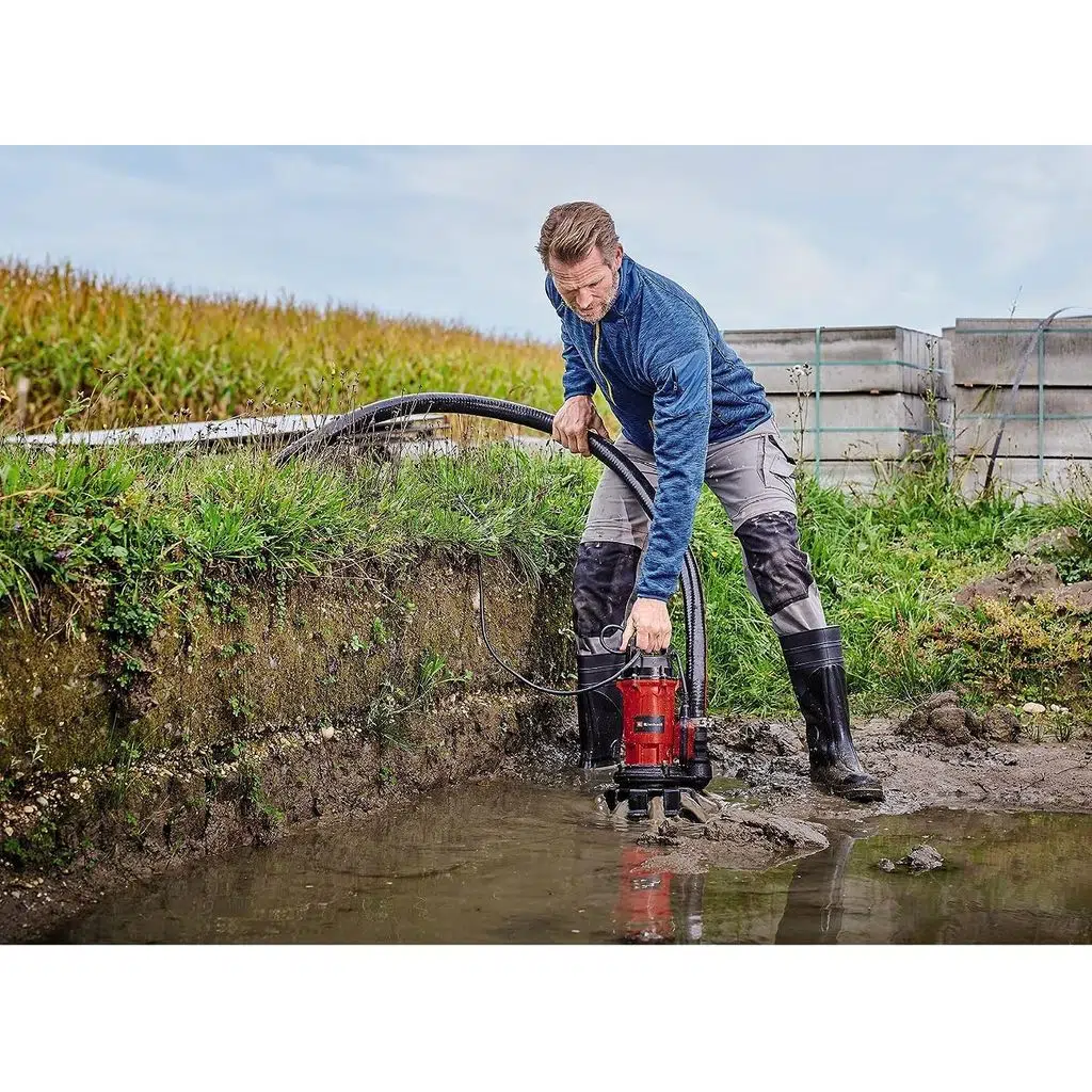Einhell GE-DP 900 Cut Dalgıç Pompa - Kirli Su, 900 W gücü ve saatte 16.000 litrelik maksimum aktarım hızıyla çok miktarda yabancı madde içeren suları büyük miktarlarda pompalamak için ideal bir üründür. Bu pompa özellikle yağmur, yeraltı suyu veya sel yüzünden su basmış bodrum katlarındaki veya inşaat temellerindeki su gibi aşırı kirli suları pompalamak üzere tasarlanmıştır. Bu nedenle su pompasında katı içeriklerin boyutunu küçültmek için bir kesme ünitesi ile birlikte büyük çaplı hortumların takılabilmesi için 2’’ hortum bağlantıları kullanılmıştır. Pis su pompası yüzme veya bahçe havuzlarının temizlenmesinde de son derece faydalı bir cihazdır. Özellikle bahçe havuzlarında bolca bulunan doğal biyotoplarda zaman içinde yabancı madde birikebilir, bu da hem görüntü olarak nahoştur hem de bitkiler ve balıklar için ciddi bir tehdit teşkil eder. Dalgıç pompalar sarnıçların olduğu kadar büyük yağmur suyu varillerinin ve su depolarının boşaltılıp temizlenmesi için faydalıdır. Pompanın gövdesi yüksek gerilime dayanabilmesi için dökme alüminyum ve demirden yapılmıştır. Çift kat mekanik conta cihazın servis ömrünün uzun olmasını sağlar. Pompanın kullanılacağı noktaya kolay taşınmasını sağlayan ergonomik tasarımlı bir taşıma kulpu bulunmaktadır. Şamandıralı anahtarının yüksekliği istenen şekilde ayarlanabilir.