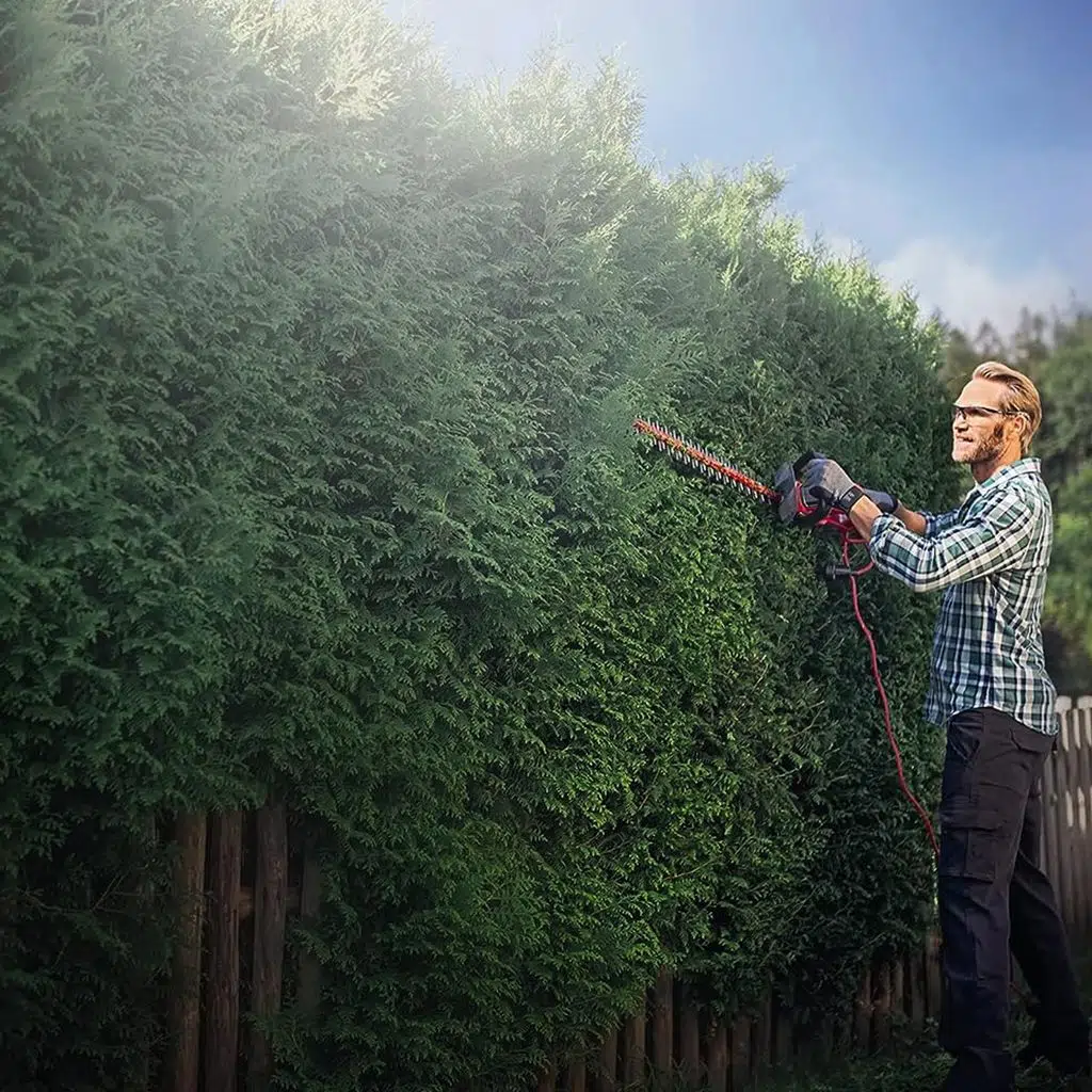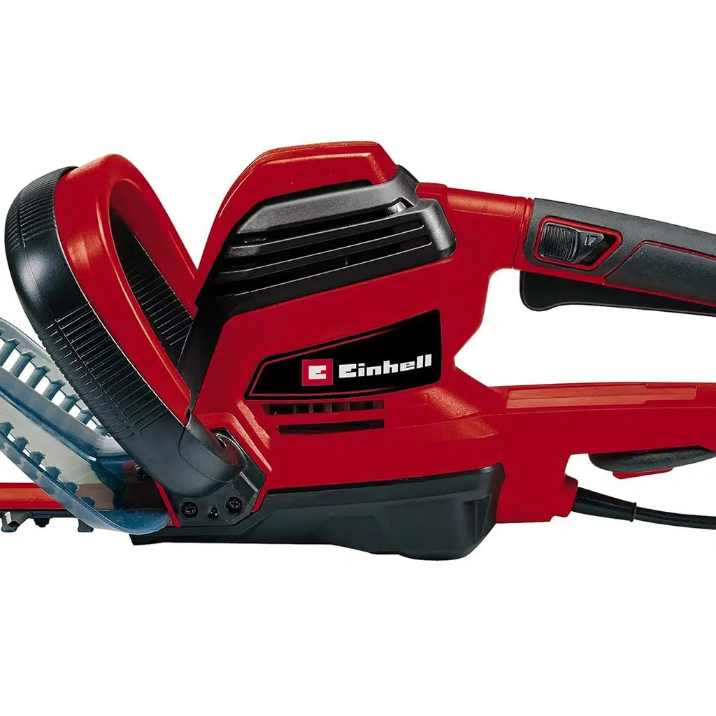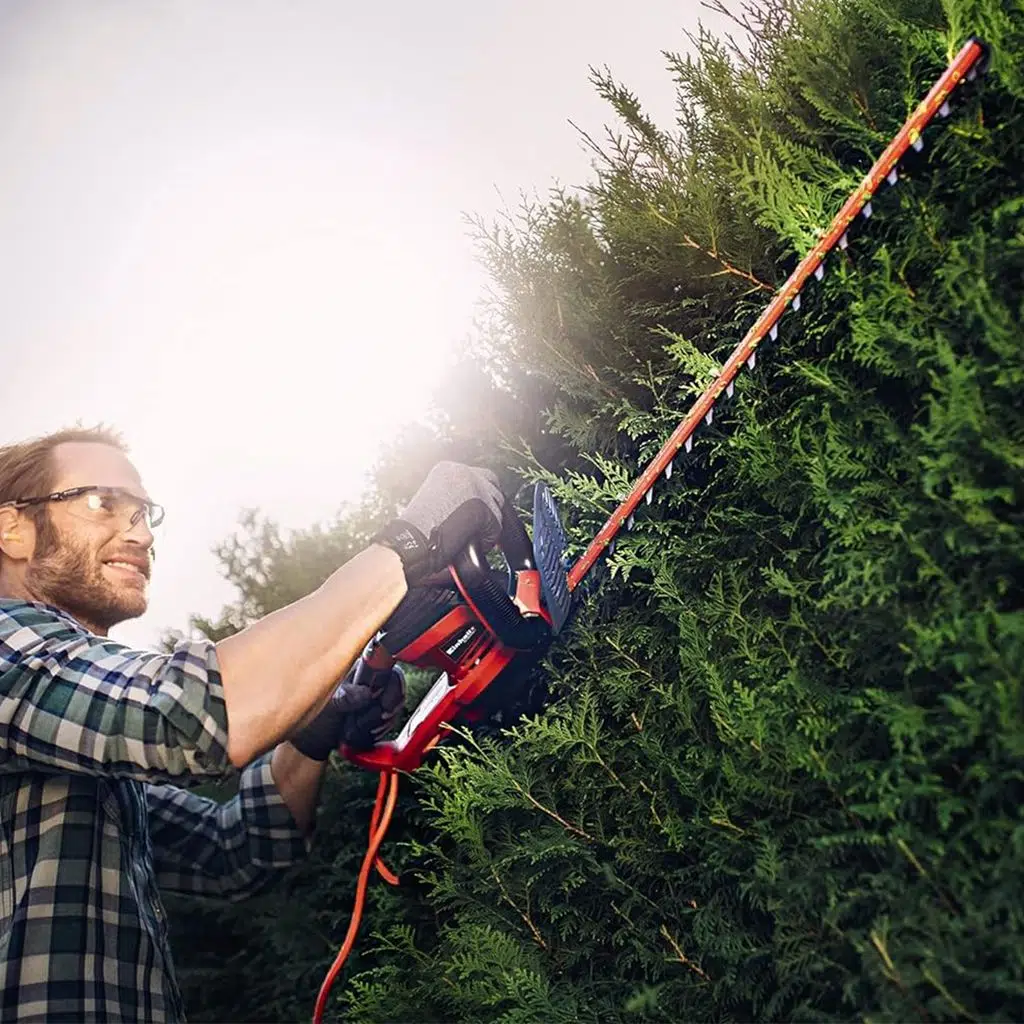 Giriş voltajı: 220-240 V | 50 Hz;Güç: 700 W;Boşta çalışma hızı: 1500 min^-1;Bıçak uzunluğu: 71 cm;Kesme uzunluğu: 67 cm;Diş aralığı: 30 mm;Dakikadaki kesme sayısı: 3000 min^-1;Kesici durdurmalı iki elle güvenlik anahtarı <1 sn.;Lazer kesim ve elmasla taşlanmış çelikten emniyet bıçakları;Uzun ömür için metal dişli;Optimize edilmiş ergonomi için ek tutamak;Arka tutamak döndürülebilir;Geniş el koruma kalkanı;Alüminyum bıçak üstlüğü;Çıkarılabilir şok koruması;Saklama ve taşıma için sağlam kesici muhafazası;Kırpıntı siperliği;Kablo gerginliği önleme klipsi;Einhell GE-EH 7067 Elektrikli Çit Budama,çit ve çalı budama işleriniz için güvenilir bir yardımcıdır. 71 cm uzunluğundaki bıçak boyu ve 670 milimetrelik bir kesme uzunluğu ile, 700 W'lık motoru ile kaliteli, güçlü bir yardımcıdır. Einhell GE-EH 7067 Elektrikli Çit Budama, 30 milimetre diş aralığı ile 1.500 / dakika boşta hıza sahiptir. Lazer kesim, elmas taşlama dişleri hassas kesim ve uzun ömürlülük için tasarlanmıştır. Metal dişli tertibatı ile uzun servis ömrüne sahiptir. Ana tutamakta bulunan kaymayı engelleyen yumuşak kaplamalar, ek tutamak ve düşük ağırlığı ile kullanıcı dostu ve kolay bir kullanım sunar. Ekstra güvenlik çift el kilidi ile sağlanır ve kilit boşa alındığında bir saniyeden az sürede kesiciler durur. Kesiciler üzerinde alüminyum koruyucu bulunur. Kablo gerginliği önleme klipsi de ek güvenlik için sağlanmıştır. Kolayca taşınabilmesi için sağlam kesici koruyucusu ile gelir. Kesimlerin toplanması için kullanılan aparat her iki tarafa da monte edilebilir.