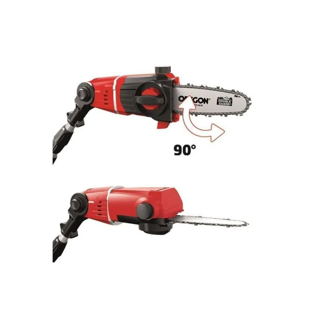 • Teleskopik sap, 7 kademeli eğilebilir motor başlığı, kolay yatay budama için 90° döndürülebilir aparat ve ayarlanabilir kulplar.