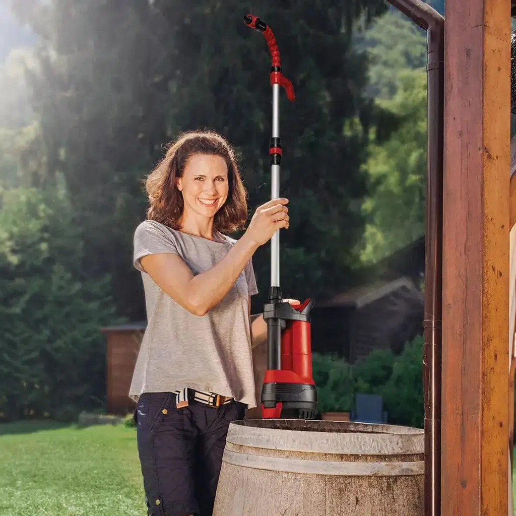 GE-PP 5555 RB-A pompa birçok farklı kullanım için tasarlanmıştır. Dalgıç tipi basınçlı pompa olarak sarnıçlarda veya kuyularda, ayarlanabilir bağlantı borusuyla da yağmur suyu depolarında kullanılır. Bunun yanı sıra ev içi kullanım için (içme suyu hariç) ve bahçe sulamada fıskiyelere ve hortumlara bağlanmak üzere tasarlanan otomatik fonksiyonuyla ideal bir üründür. Çok aşamalı pompa tahrikiyle yüksek bir aktarım basıncı sunar, entegre kuru çalıştırma koruma düğmelerinin olduğu otomatik fonksiyonuyla cihaz su ihtiyacı olduğunda otomatik olarak çalışır, ihtiyaç karşılandığında ise otomatik olarak kapanır. Bahçe hortumunun istenen şekilde konumlanması için tasarlanan teleskobik eklenti borusu ve esnek su bağlantısı ve kesme musluğu her ihtiyaca göre istenilen şekilde ayarlanabiliyor. Sistemde su depolarına bağlanmak için bir tutucu, kablonun pompa gövdesine bağlanabilmesi için bir pratik kablo geri toplama mekanizması ve ergonomik bir taşıma tutamağı bulunmakta. Yüksek kalite ve uzun kullanım ömrü için pompada birinci sınıf mekanik conta ve sağlam plastik muhafaza kullanıldı.