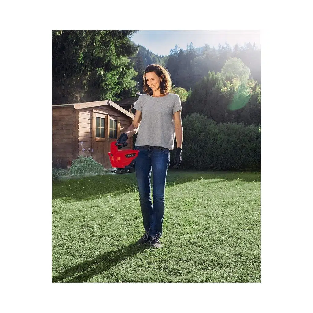 Maks. Yüzey kapasitesi: 800 m²;Tanecik haznesi hacmi: 3.3 L;Power X-Change akü sistemi üyesi,1x18V akü gereklidir;6 kademeli elektronik hız kontrolü;8 kademeli, ergonomik debi ayar düğmesi;3.3l dolum kapasitesi;Yumuşak tutamak sayesinde ergonomik ve güvenli kullanım;Ayarlanabilir serpme genişliği (maks. 5m);Gübre, çim tohumu ve tuz serpmek için her dönemde kullanım;Gübre, çim tohumu ve tuz serpmek için her dönemde kullanım;Akü ve şarj cihazı dahil değildir (ayrı olarak satın alınabilir);Einhell GE-US 18 Li-Solo Akülü Serpme Makinesi, bahçenizdeki veya dış mekandaki birçok işi çok daha kolay hale getirir. Kışın gübreleme, tohum ekme veya buz çözme tuzunu yayma gibi işlerde rahatça kullanabilirsiniz. Power X-Change ailesinin bir üyesi olarak, serpme makinesi, tüm Power X-Change grubundan olan Einhell cihazlarında kullanılabilen 18 V sistem akü ile çalışır. 6 seviyeli elektronik hız kontrolü ve 8 seviyeli, ergonomik serpme hacmi kontrolü mükemmel dozda serpme performansı sunar. Konteyner 3,3 litre kapasiteye sahiptir. Serpme genişliği ayrı ayrı ayarlanabilir ve maksimum beş metreye kadar ayarlanabilir, bu da yaklaşık 15 metrekare. Yumuşak tutamak sapı ergonomik çalışmayı sağlar. Einhell Universal Serpme Makinesi GE-US 18 Li, tüm yıl boyunca, gübre, çim tohumu veya buz çözücü tuzu verimli ve kolay bir şekilde yaymak için kullanılabileceğiniz bir cihazdır. Bu cihaz, pratik bir başlangıç seti olarak ayrı satılan akü ve şarj cihazı olmadan teslim edilir. Einhell kablosuz çit budamanın çalışması için 18 V Power X-Change akü gereklidir.