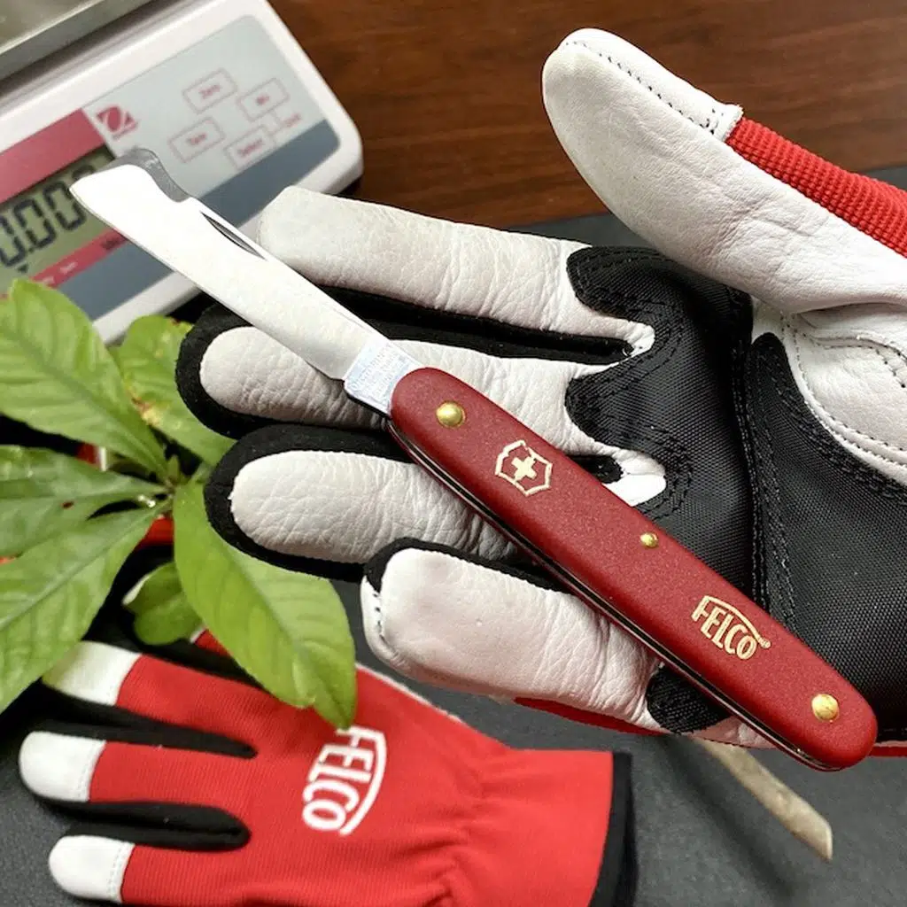 FELCO 3.90 20. aşılama bıçağı Bitki çeşitlerinin aşılanması için uzmanlaşmıştır. Bıçak uzunluğu: 57 mm, katlanabilir. Dalları aşılarken kabuğu ayıran bir çıkıntı vardır. Paslanmaz çelik malzeme, sertleştirilmiş Sert plastik kaplı kulp, bakır perçinli blok. Menşei: İsviçre Yapımı.
