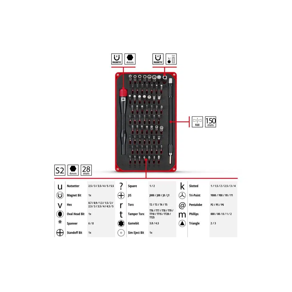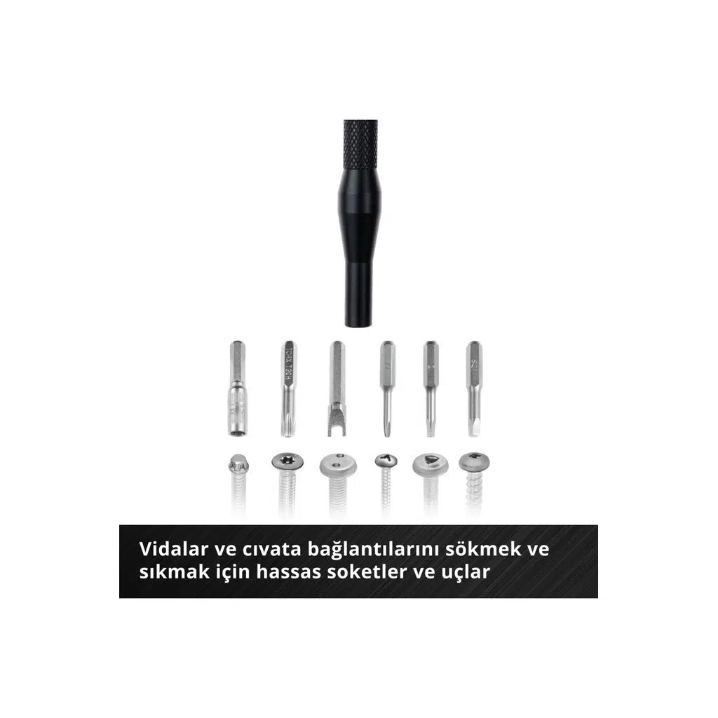 Hassas uçlar - Elektronikçi alet setindeki yüksek kaliteli hassas uçlar, emniyet vidası bağlantılarını gevşetmek ve sıkmak için tasarlanmıştır.