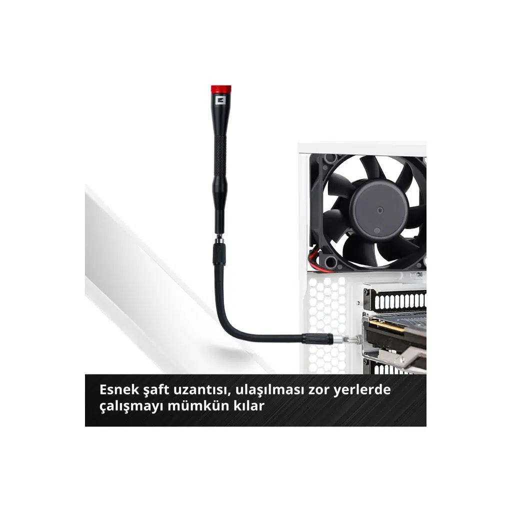Esnek şaft uzatması - Hassas alet setinin esnek 150 mm şaft uzatması ile ulaşılması zor alanlara ulaşılabilir ve köşelerde çalışmak mümkündür.