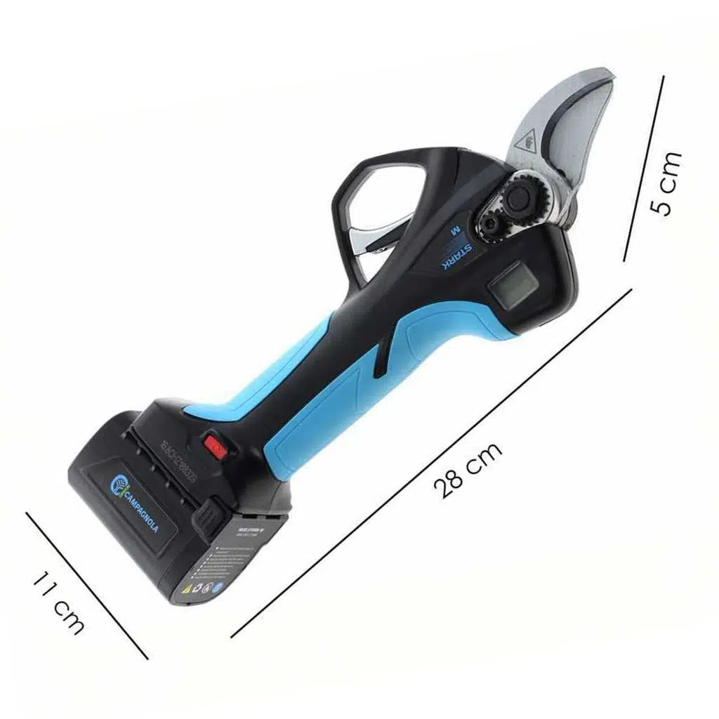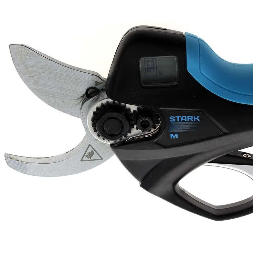 Kategorisindeki en iyi ağırlık / güç oranını elde etmek için tasarlanmıştır. Fırçasız motoru ve 32 mm kesme çapı sayesinde bağcılıkta, meyvecilikte ve zeytin yetiştiriciliğinde kullanılması tavsiye edilir. Yüksek mukavemetli çelik bıçaklar, çapaksız, temiz ve hassas kesimlere olanak sağlar. Stark M Akülü Budama Makası, yapılan kesimleri ve kalan şarj seviyesini görmenin mümkün olduğu bir LCD ekran ile donatılmıştır. Stark M akülü budama makası her biri kullanıma bağlı olarak ortalama çalışma süresi 3-4 saat olan 2 lityum iyon akü ile donatılmıştır.