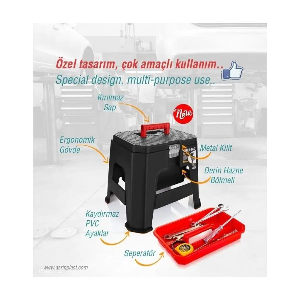 Takım çantalı tabure balıkçı tabure evde,işte,piknikte pratik çok amaçlı tabure üs kısımdaki kapağı açarak alet vb. eşyalar konulabilir balıkçılar kullanabilir taşıma sapı ile istenilen yere taşıması kolaydır kaymaz ayak yapısı sağlam şık dizayn.