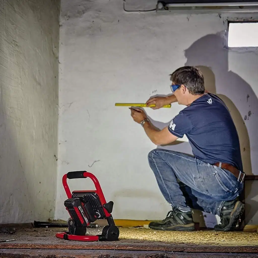 Einhell TC-CL 18/1800 Li akülü projektör karanlıkları aydınlatıyor: 18V Power X-Change şarj edilebilir aküyle çalışan cihaz yüksek performanslı LED ışığıyla optimum aydınlatma sağlıyor. Sürekli değişken parlaklık ayarı için bir dimmer vardır ve 360° döner lamba başlığı üst düzey esneklik kazandırmaktadır. Pratik taşıma kolu ile taşınması çok kolay ve katlanıp bir kenarda kolayca saklanabiliyor. Evrensel kullanım için sağlam bir sabitleme kancası da temin edilmektedir. Ürünle birlikte akü veya şarj cihazı gelmemektedir. Bu ürünler pratik başlangıç setleri şeklinde ayrı olarak temin edilebilmektedir.