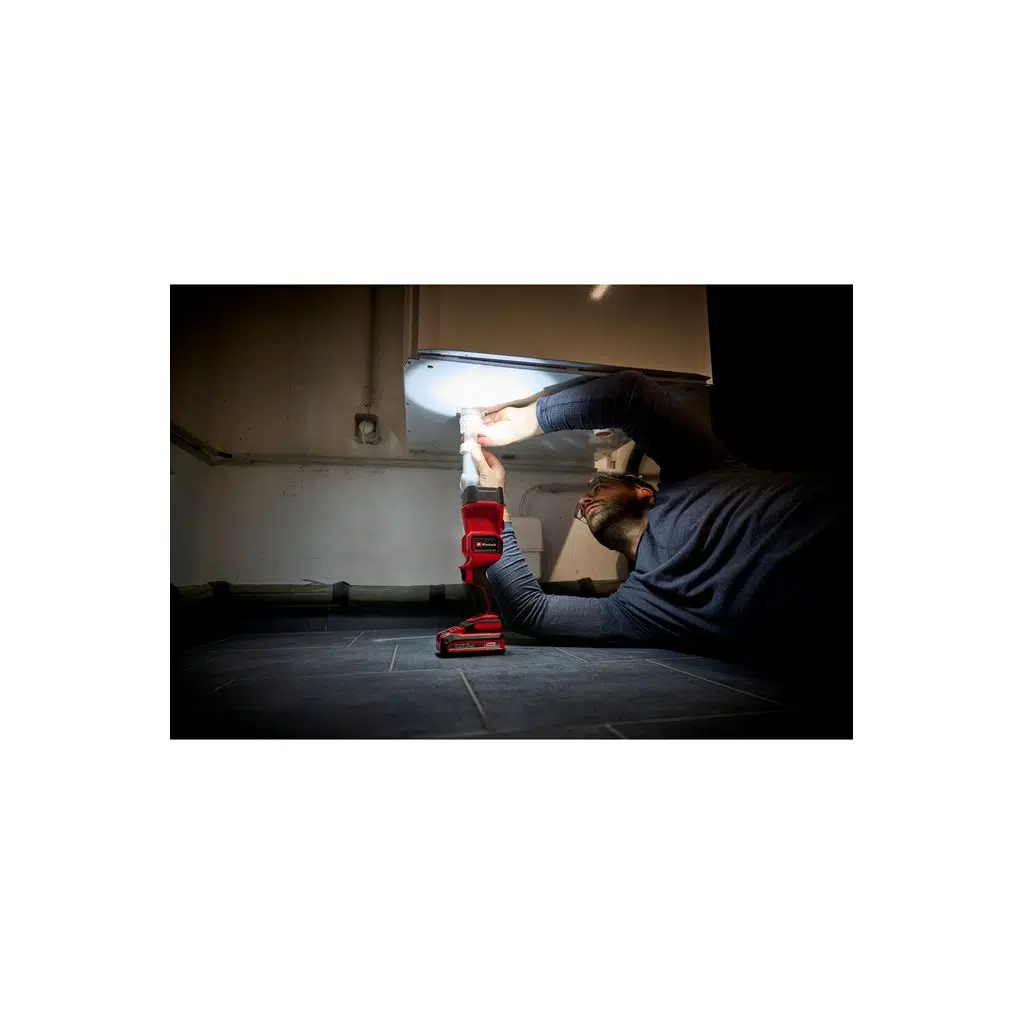 Einhell akülü lamba TC-CL 18/350 Li – Solo, Power X-Change ailesinin bir üyesidir ve yetersiz aydınlatılmış alanlarda çalışırken güvenilir bir yardımcıdır. Güçlü LED çıkışları 350 lm ve 7000 K'dir ve 30 m'ye kadar mesafede gün ışığı benzeri ışık rengiyle optimum aydınlatma sağlar. Dönebilen ışık başlığı kullanımda maksimum esneklik sunar. Hafif akülü lamba mobil kullanım için idealdir ve yumuşak tutma yeri sayesinde özellikle kullanışlıdır. Entegre sabitleme halkasının yardımıyla lamba kolayca asılabilir veya yerden tasarruf sağlayacak şekilde saklanabilir.