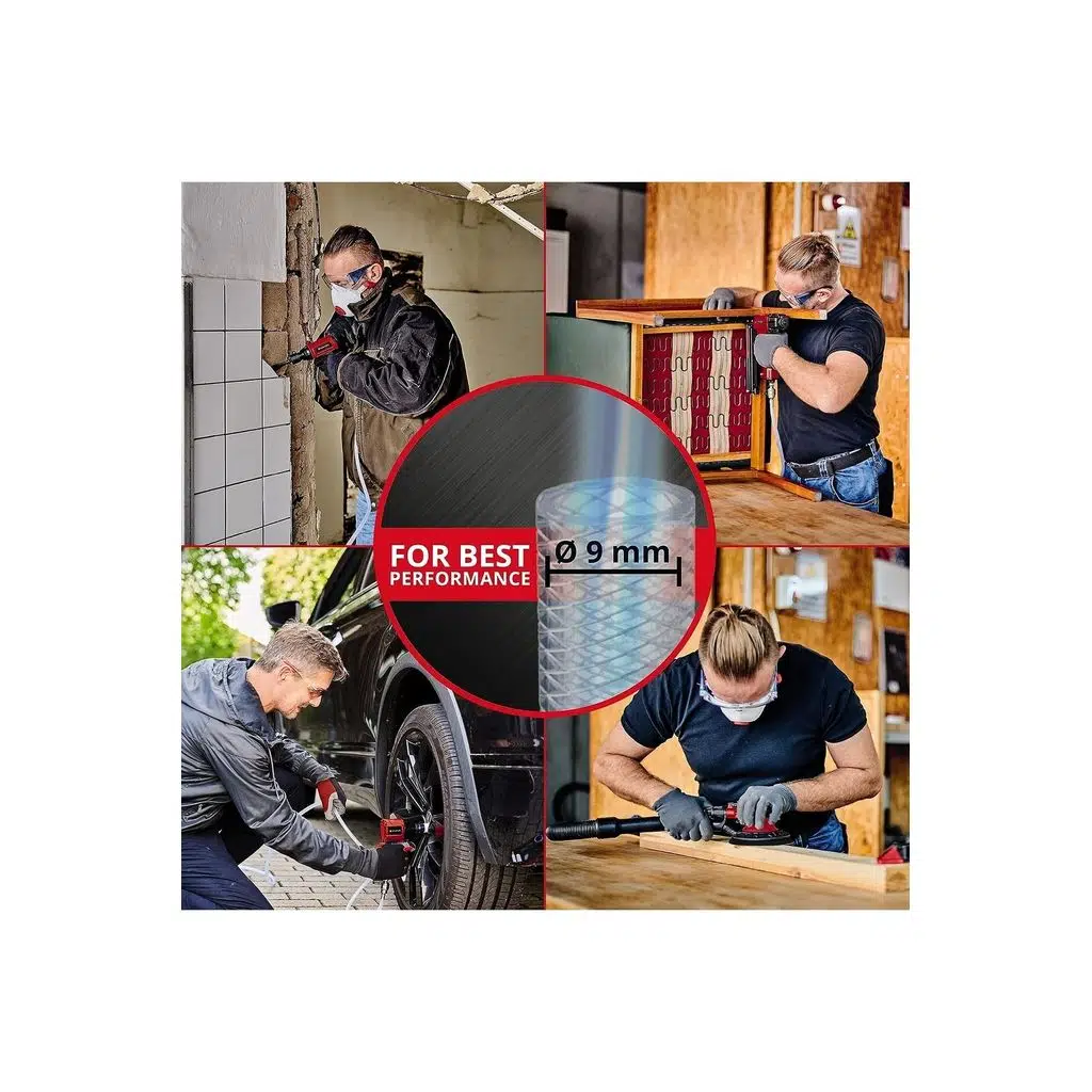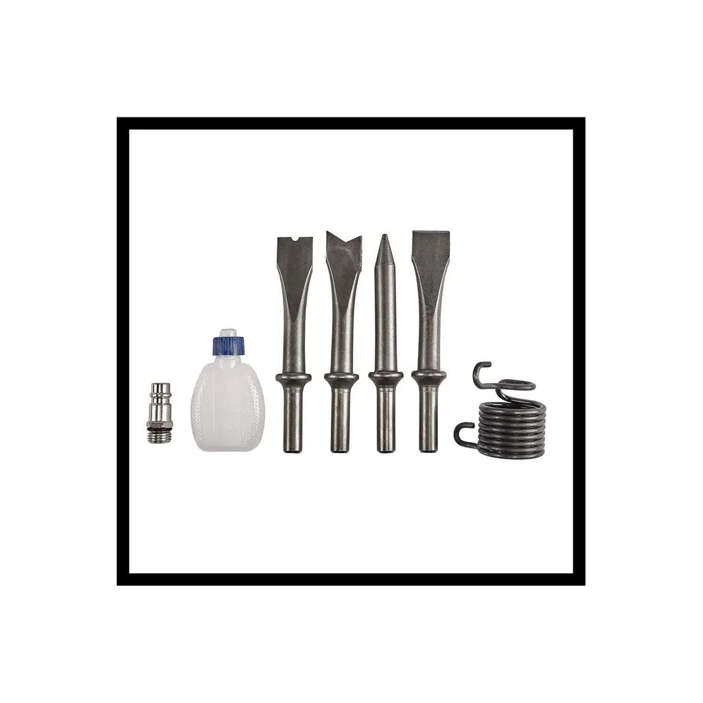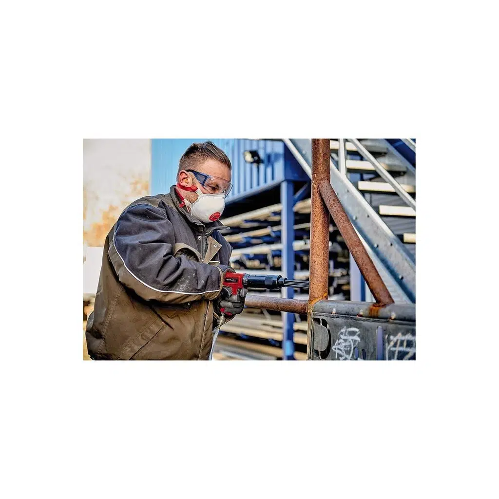 Maks. Çalışma basıncı: 6.3 bar;Hava tüketimi: 113 L/min;Üfleme oranı: 4500 min^-1;Freze derinliği: 43 mm;Darbe gücü: 1.2 J;Taş ve metal üzerinde çalışmak için yüksek performanslı keski;Kullanım sırasında güvenlik için kaymaz kauçuk tutamak;9 mm veya daha büyük hortum iç çapı ile en iyi performans;Uç, altıgen mandren tarafından güvenli bir şekilde tutulur;Çeşitli uygulamalar için 4 parçalı 120 mm keski seti dahil;Bir iğne ölçekleyici olarak kullanım için uygun ek parça dahil;Pas ve yüzeyleri temizlemek için iğne kazıyıcı;1 küçük yağ şişesi, 1 nipel ve 1 germe yayı dahil;Pratik bir taşıma ve saklama çantası dahil;Einhell pnömatik ( havalı ) kırıcı TC-PC 45, bir iğne kazıyıcı ile birlikte atölye, ev ve ev dışı alanlarda yenileme ve yıkım çalışmaları için güçlü bir yardımcıdır. Taş ve metal üzerinde çalışmak için uygun yüksek bir güce sahiptir. Kullanım sırasında güvenlik için kaymaz kauçuk tutamak mevcuttur. 6,3 bar maksimum çalışma basıncında cihaz, dakikada 4,500 darbe hızı ile 1,2 jul'e kadar darbe kuvveti sağlar. Uç, altıgen mandren tarafından güvenli bir şekilde tutulur. İç çapı 9 mm veya daha büyük olan bir hortum ile en iyi performans sağlanır. Kapsamlı donanım sayesinde, kullanıcı kullanım açısından pratikte sınır tanımaz. Teslimat içeriğine, 4 parçalı 120 mm keski seti, pas ve yüzeyleri temizlemek için iğne kazıyıcı, 1 küçük yağ şişesi, 1 nipel ve 1 germe yayı dahildir. Cihaz pratik taşıma ve saklama çantası içinde teslim edilir.