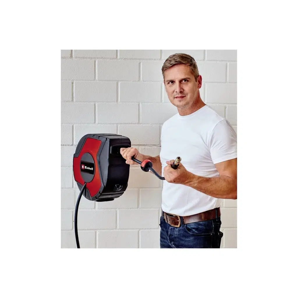 EİNHELL TC-PH 150 OTOMATİK HORTUM MAKARASI 4138005 Ürün no: 4138005 15m hava hortumu ve 1,5m bağlantı hortumu (her biri 9mm iç çap); Her iki hortum da kauçuk ve PVC karışımından yapılmıştır; Bu malzeme hortumları esnek ve bükülmeye karşı dirençli hale getirir; Maksimum çalışma basıncı 16 bar'dır.; Otomatik kilitleme sayesinde gerilimi azaltılmış çalışma; Otomatik yavaş giriş sayesinde hortum güvenli bir şekilde sarılır; Katman katman sarma, hortumun tıkanmasını önler; Bir tabancayı takmak için mahfazadaki bir kanca kullanılabilir; Esnek çalışma için 170° dönebilen duvar braketi ile tamamlayın; Duvar braketini takmak için aksesuarlarla birlikte teslim edilir; Geniş çalışma yarıçapı 15 metrelik hortum uzunluğu geniş bir çalışma yarıçapı sağlar. Hortum, onu esnek ve bükülmeye karşı dayanıklı kılan bir PVC kauçuk bileşiminden yapılmıştır. Temiz bir şekilde sarılmış Yavaş hortum girişi güvenli hortum sarımı sağlar ve maksimum kullanıcı güvenliğini garanti eder. Hortumun içeri çekme sırasında bloke edilmesi tabaka sarımı ile önlenir. Üfleme tabancası için braket TC-PH 150 basınçlı hava hortumu makarasının ön tarafındaki pratik kanca, bir üfleme tabancasının takılmasını kolaylaştırır. Döner duvar montajı 170°'ye kadar döndürülebilen duvar montajı özellikle esnek kullanım sağlar. Gerekli montaj aksesuarları teslimat kapsamına dahildir. Ürün Açıklaması Einhell TC-PH 150 basınçlı hava hortumu makarası her zaman kullanıma hazırdır ve evdeki, atölyedeki ve garajdaki tüm işler için kullanışlıdır. Hortum ayrıca kısa sürede hızlı ve güvenli bir şekilde istiflenebilir, böylece takılma tehlikeleri ve kaza tehlikeleri önlenir. Hortum makarası, 15 metre basınçlı hava ve 1,5 metre bağlantı hortumundan (her biri 9 mm iç çap) oluşur. Maksimum çalışma basıncı 16 bar'dır. Her iki hortum da PVC-kauçuk karışımından oluşur. Bu malzeme hortumları esnek ve bükülmeye karşı dirençli hale getirir. Otomatik tarama sayesinde gerilimsiz çalışma mümkündür. Otomatik yavaş geri çekme sayesinde hortum güvenli bir şekilde sarılır. Katmanlı sargı, hortumun tıkanmasını önler. Muhafazadaki kanca, bir üfleme tabancası takmayı mümkün kılar. Esnek kullanım için 170° dönebilen duvara montaj aparatı da dahildir. Teknik Özellikler Hortum uzunluğu 15 m Bağlantı hortumu uzunluğu 1,5 m Çalışma basıncı maks. 16 bar Hortum iç çapı 9 mm