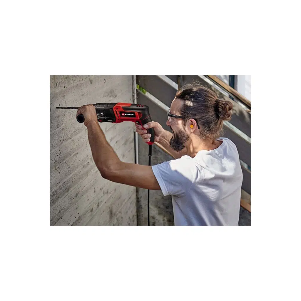 Einhell TC-RH 800 4F kırıcı delici, restorasyon ve renovasyon işlerine yönelik 800 W'lık güçlü bir yardımcıdır ve delme, darbeli delme, keskileme ve kilitli ve kilitsiz keskileme olmak üzere dört temel fonksiyona sahiptir. Delici kırıcılar en zor işlerde başvurulan bir cihazdır. Taş ve beton gibi malzemeleri kırar ve deler. Darbeleri malzemeyi tam anlamıyla "paramparça" ederken, kesici kısmı malzemeyi döner hareketiyle içine alıp öğütür. Kırıcı deliciler hem yıkım işlemleri için hem de beton, tuğla veya taş gibi sert malzemeleri kırmak veya parçalamak için uygundur. Kırıcı delici 2.6 joule lük gücüyle ve pnömatik darbe mekanizmasıyla betonda 26 mm'ye kadar delme kapasitesine sahip çok iyi bir darbe gücü sunar. Tüm fonksiyonlar için pratik bir konum düğmesine sahiptir ve geniş yumuşak kaplamalı alanı sayesinde sağlam ve dolayısıyla güvenli bir tutuş imkanı sağlar. Kırıcı delicide konforlu ve kullanıcı dostu bir çalışma olanağı sunan bir sürekli çalışma kilidi ve yarı otomatik fonksiyona sahip bir SDS-plus alet mandreni bulunmaktadır. Yüksek gücünün yanı sıra, cihazın elektronik hız kontrolü her malzemeyle ve uygulamayla kullanılabilmesini sağlarken, aşırı yük kaplini ile güvenli çalışma imkanı sunulmaktadır. İstediğiniz şekilde ayarlayabileceğiniz delme derinliği durdurucusu dayanıklı plastikten üretilmiştir. Ürün pratik bir E-Box Basic taşıma ve saklama çantasıyla birlikte verilmektedir.