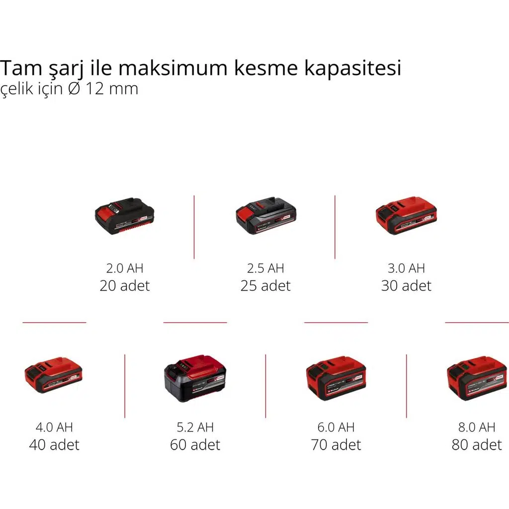 Disk ölçüsü: 115 mm;Maks. Boşta çalışma hızı: 8500 min^-1;Maks. Kesme derinliği: 28 mm;Power X-Change akü sistemi üyesi;Sınıfının en hafif avuç taşlaması;Yumuşak başlama (Softstart) ve yeniden başlama koruması;Uzun ömür için aşırı yük koruması;Hava kanalları sayesinde hızlı soğuma ve uzun ömür;Motor ve dişli setinin ayrı olması sayesinde yumuşak kullanım;Güvenli çalışma için hızlı ayarlanır disk koruması;Sağlam alüminyum alaşımı dişli gövdesi;Ergonomik yumuşak yüzeyli ince tasarım;İlave tutamak üç farklı pozisyonda monte edilebilir;2.6 Ah Plus akü ve üzeri akülerle kullanılması tavsiye edilir;Akü ve şarj cihazı dahil değildir (ayrı olarak satın alınabilir);Kesme diski dahil değildir;Einhell TE-AG 18/115 Li - Solo Akülü Avuç Taşlama sınıfının en hafif avuç taşlama makinası olup taşlama ve kesim işleriniz için vazgeçilmez bir üründür. Yumuşak başlama(Soft start) ve yeniden başlama güvenlik özelliği ile güvenli bir kullanım sunar. İnce hatlı dizaynı, ergonomik yumuşak tutamağı ve 3 pozisyonda kullanabileceğiniz ek tutamak ile konforlu bir tutuşa sahiptir. Disk muhafazası hızlı ayarlanma özelliği ile işinizin gereksinimine göre kolayca ayarlanabilir. Daha uzun bir servis ömrü için aşırı yük koruma sistemi bulunur. Kesme diski dahil değildir. TE-AG 18/115 Li - Solo ürününde şarj cihazı ve akü bulunmamaktadır. İhtiyacınız olan ve dilediğiniz kapasitedeki aküleri ve şarj cihazını ayrı ayrı satın alabilir ya da daha önce satın aldığınız Power X-Change ailesi ürünlerinde bulunan akü ve şarj cihazlarını kullanabilirsiniz. Böylece her cihaz için tekrar tekrar akü ve şarj cihazı almak zorunda kalmaz ve tasarruf edersiniz. Optimum çalışma için 2,6 Ah ve daha yüksek kapasiteli akü kullanmanız tavsiye edilir