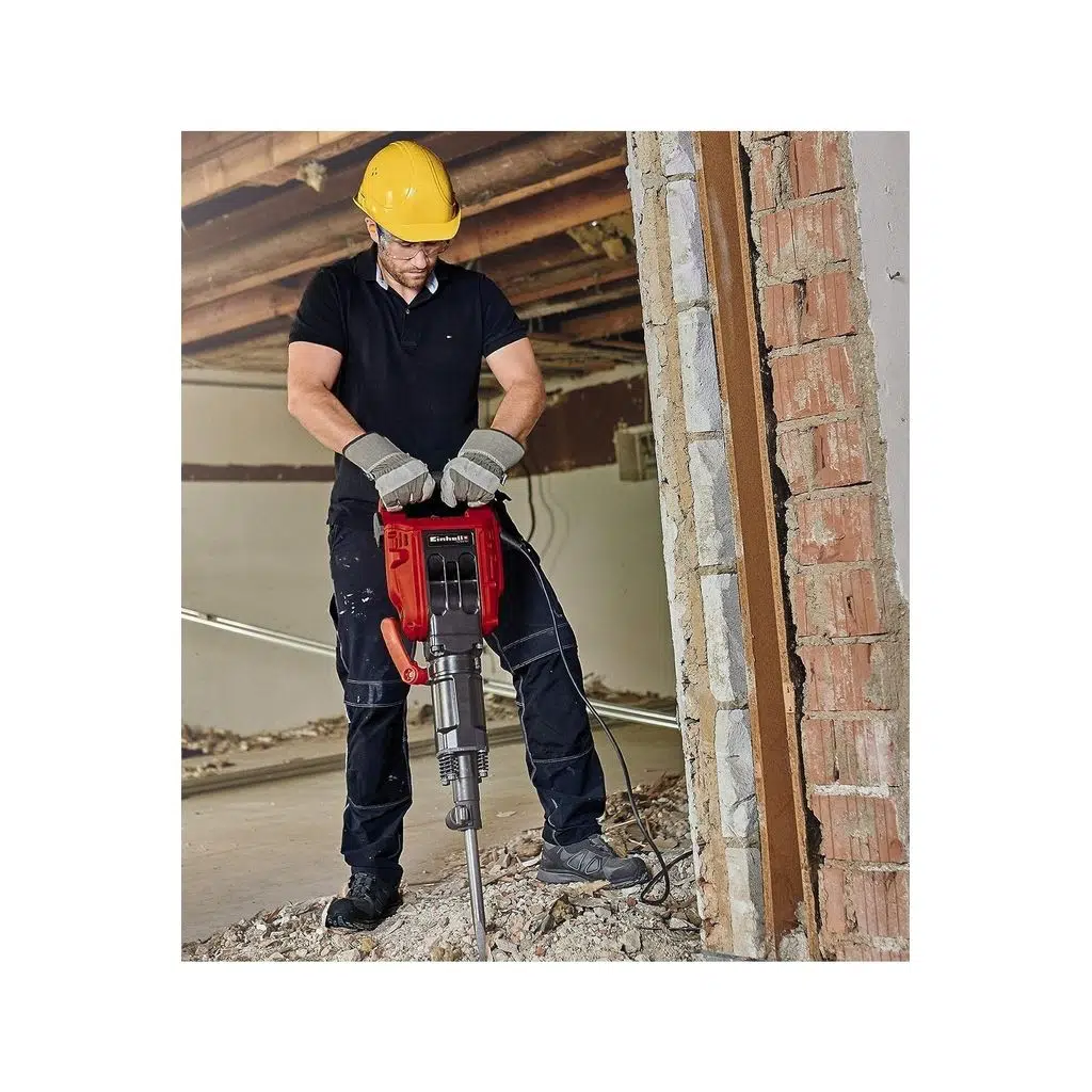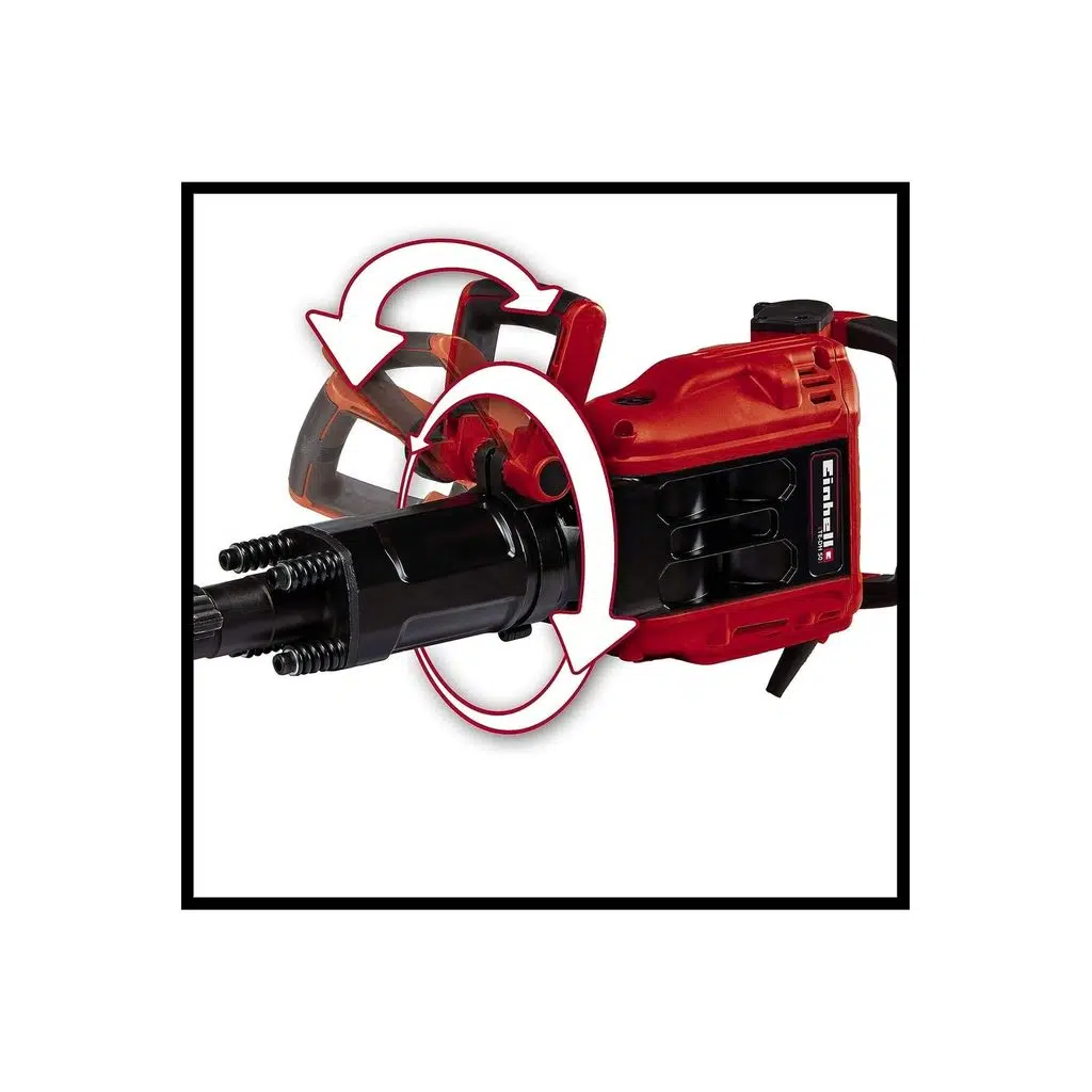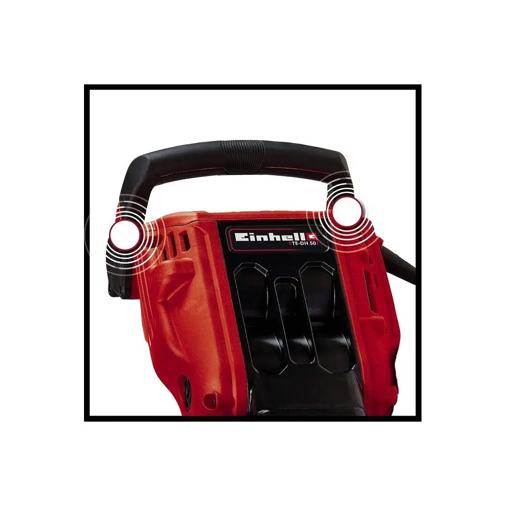 Giriş voltajı: 220-240 V | 50 Hz;Güç: 1700 W;Darbe oranı: 1800 min^-1;Darbe gücü: 50 J;Güç kablosu: 400 cm | H07RN-F;Takım tutucu: SDS-HEX 30 mm;50 joule darbe kuvveti ile yüksek yıkım performansı;Sağlam SDS-Hex mandren ile hızlı alet değişimi;Titreşim önleyici ana tutamak;180° dikey / 360° yatay ayarlanabilir ilave sap;Otomatik karbon fırça kapatma tertibatı muhtemel arızaları önler;Güvenli çalışma için yumuşak başlama (Softstart) fonksiyonu;Uzun süreli kullanım için sağlam konstrüksiyon;Sağlam 4 m kauçuk güç kablosu ile maks. hareket serbestliği;Birlikte verilen sivri uçlu ve yassı keski sayesinde hemen kullanıma hazır;Taşıma ve saklama çantası;Einhell TP-DH 50 Kırıcı aleti ile ağır kırma uygulamaları dahi, azimli hobi „çalışanları“ tarafından kolaylıkla baş edilir. 1700 W motoru ile 50 J darbe kuvveti üreten, dakikada 1800 darbe hızı ile ev ve bahçe işlerindeki ağır yıkım işlerinde ideal bir üründür. Titreşim yastıklı sapı sayesinde düşük titreşimli çalışma sağlarken yüksek yıkım performansı gösterir. SDS-Altıgen mandren (33 mm) hızlı ve kolay takım değiştirmeye olanak sağlar. TE-DH 50 modelinde dikey çalışma pozisyonunda 180 derece ve yatay çalışma pozisyonunda 360 derece ayarlanabilir ilave sapı ile her pozisyonda esnek çalışma koşulu sağlar. Dört metre uzunluktaki sağlam yapılı kauçuk güç kablosu maksimum hareket serbestliği sağlar. Otomatik kapanma özelliğine sahip karbon fırçalar ile cihazda oluşabilecek arızalar güvenli şekilde önlenir ve TE-DH 50 modeline ilave koruma sağlanır. Sağlam ve uzun kullanım ömrüne sahip konstrüksiyonu sayesinde kırıcı sürekli işletim için tasarlanmıştır. Teslimat kapsamına dahil olan sivri ve yassı uçlu keski aparatları ile kırıcı anında çalışmaya hazırdır. Yumuşak başlama (softstart) fonksiyonu güvenli çalışmayı garanti eder. Makinenin teslimat kapsamına dahil olan temizleme bezi ile kırıcı kolaylıkla temizlenebilir. Kırıcı, pratik taşıma ve saklama arabası içinde sevk edilir.